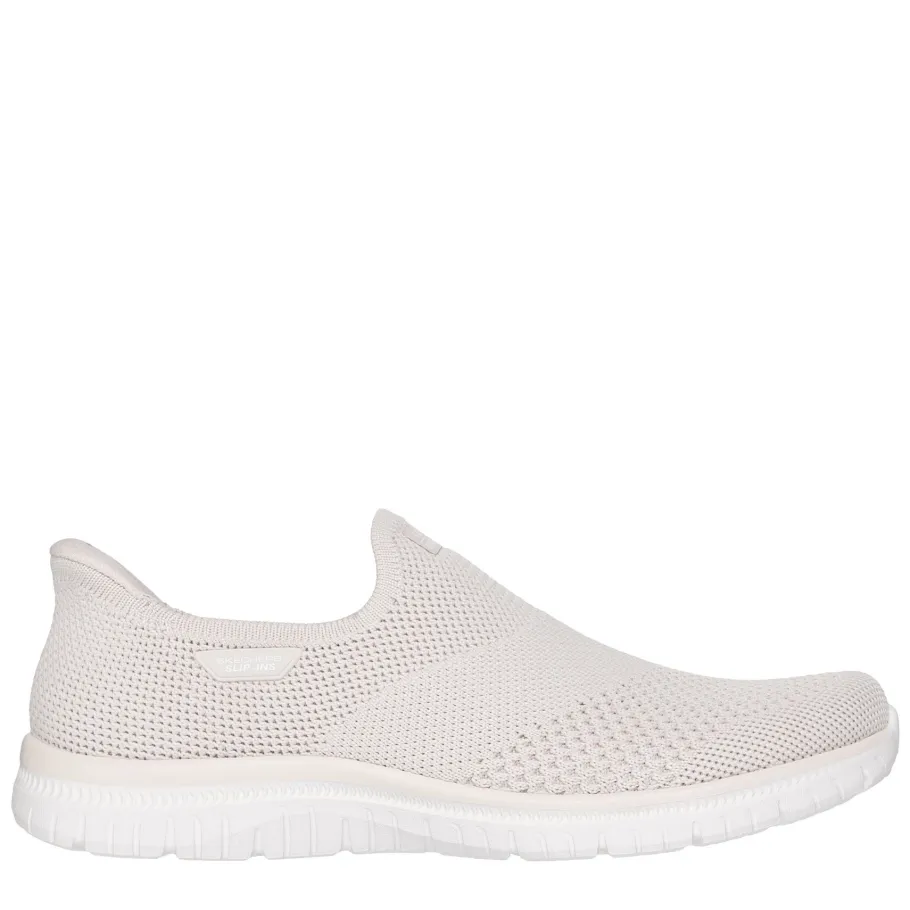 Slip into effortless comfort and style with the Skechers Hands Free Slip-ins® : Virtue – Demure. This innovative laceless design, engineered with our exclusive Heel Pillow™ technology, provides a convenient and secure hands-free slip-on. Its Stretch Fit® stretch-knit upper hugs the foot perfectly for sock-like comfort, while the Air-Cooled Memory Foam® insole offers breathable cushioning with every step. Lightweight, machine-washable and 100% vegan, this versatile shoe is perfect for your active days while staying stylish.