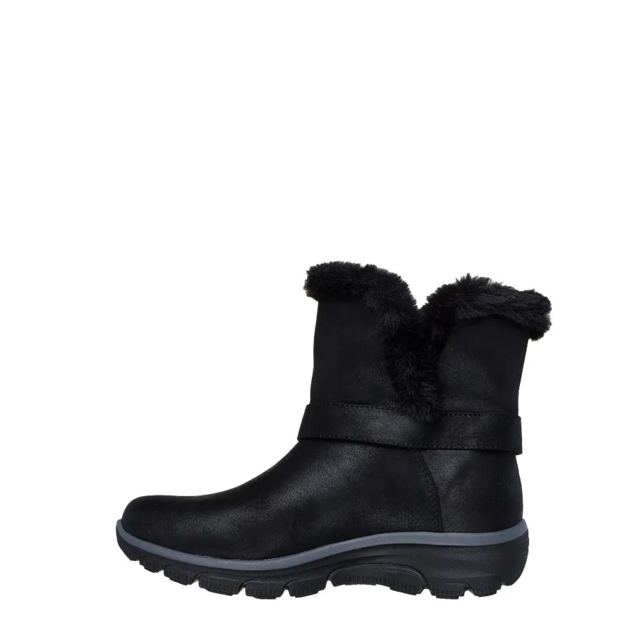 Designed with our Heel Pillow® technology, this boot features a vegan leather upper treated with 3M® Scotchgard®, a faux fur collar and lining, wrap-around buckle detail, and a cushioned Skechers Air-Cooled Memory Foam® insole.