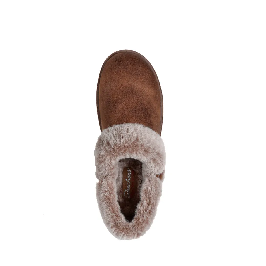 Enjoy cozy, casual comfort all season long with Skechers Cozy Campfire – French Toast 2. This comfortable, casual slipper features a vegan leather upper with faux fur trim and a comfortable Skechers Memory Foam™ cushioned footbed. Vegan leather with faux fur trim and lining