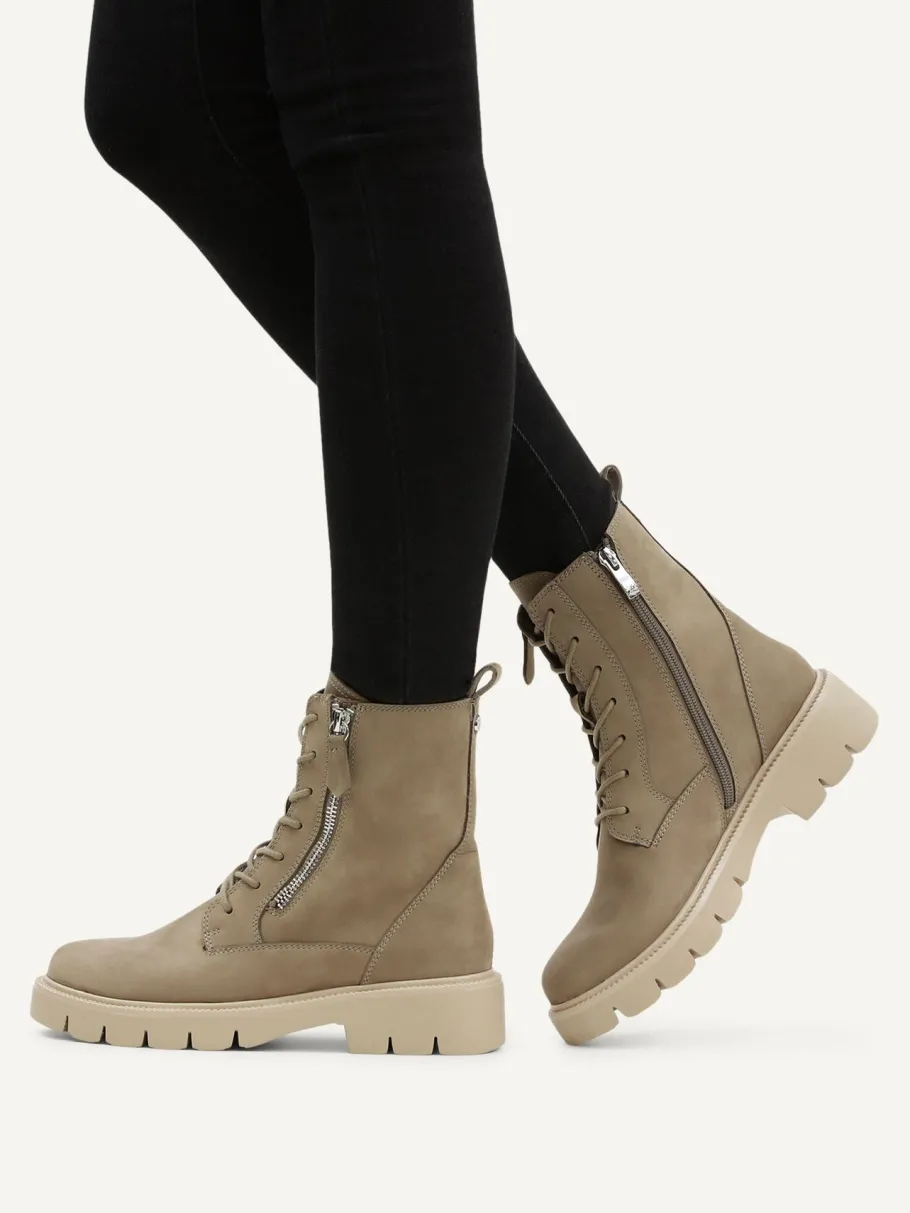 Practical and easy to slip on, this boot features a dual closure system – laces for a customized fit and zipper for added speed. Its textile and synthetic insole blend provides comfort and breathability, while the synthetic outsole guarantees grip and durability. A perfect model to enhance your autumn-winter looks with chic and confidence.