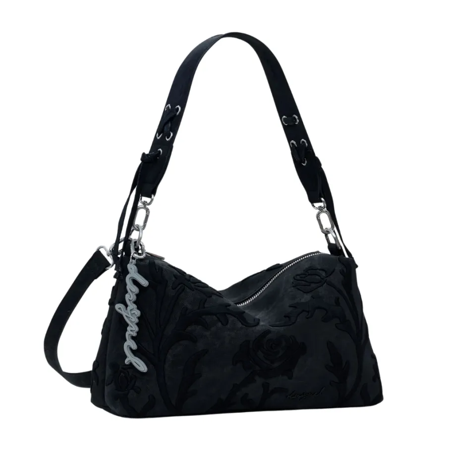 Medium-sized handbag in plain imitation leather, with 3D relief engravings and zip fastening.