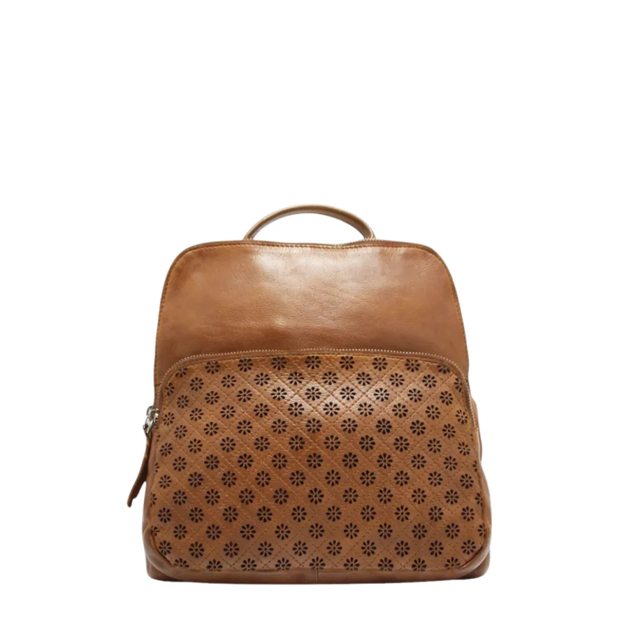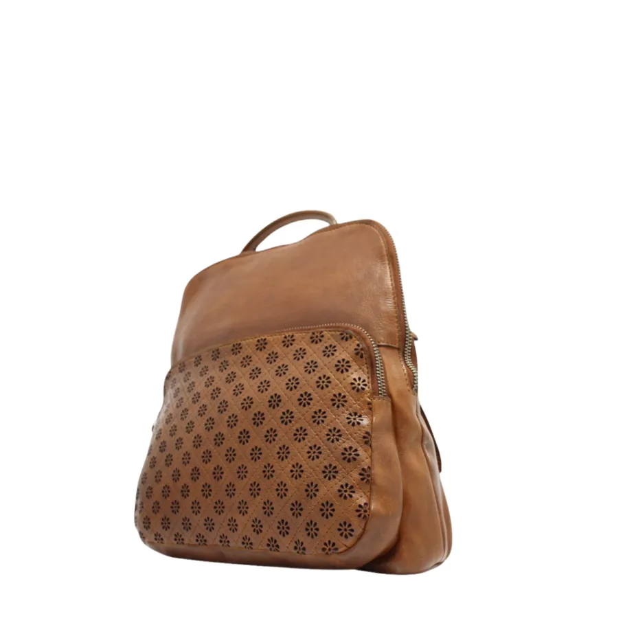 This genuine leather backpack perfectly combines refinement and functionality. Its front, perforated with floral motifs, adds a touch of femininity while remaining sober. Ideal for city life or getaways, it offers comfort and style to all your outfits.