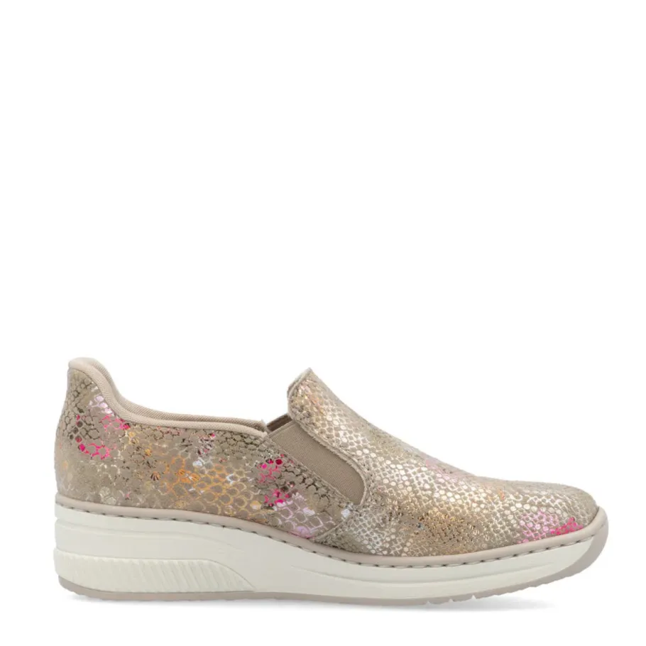 Lightweight, cushioned sole with wedge heel for a pleasant walking feel