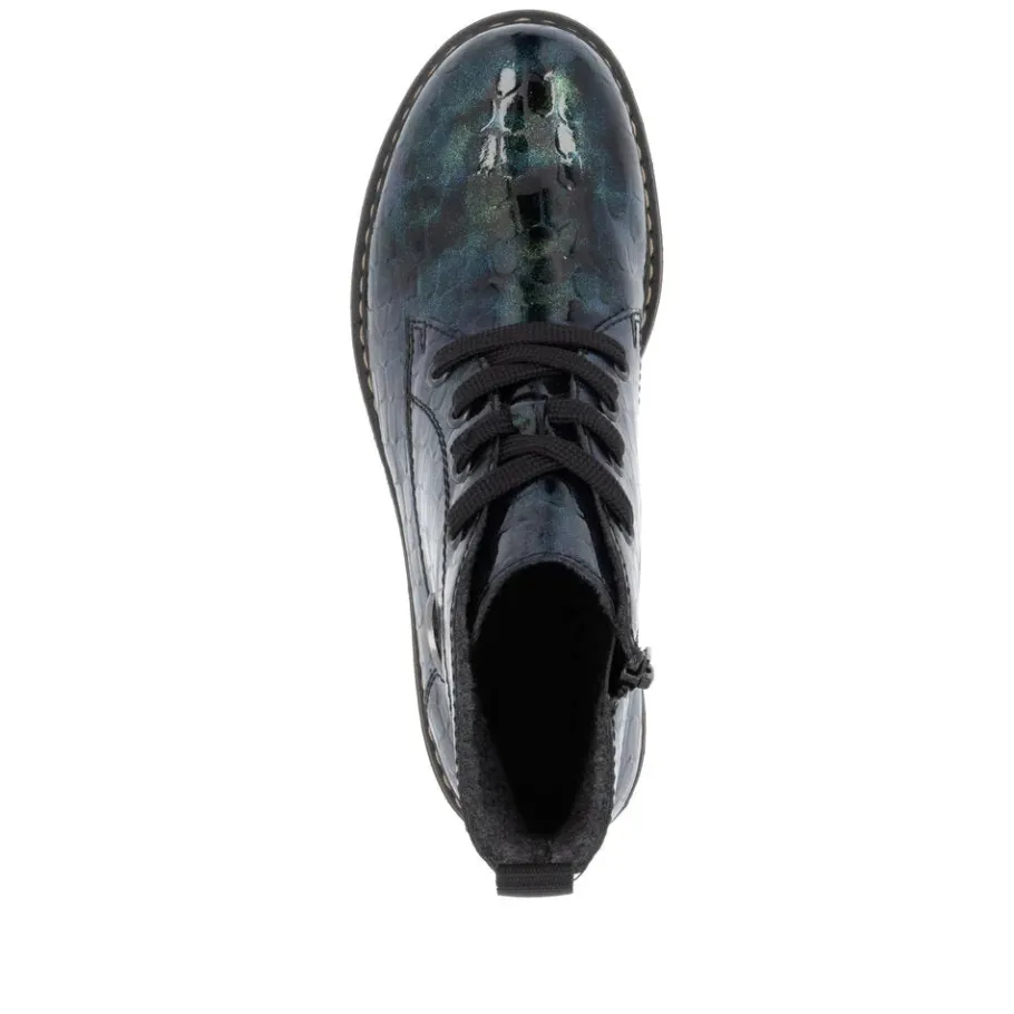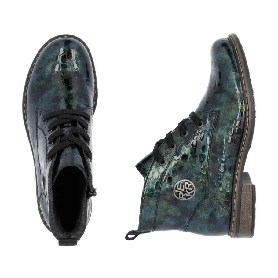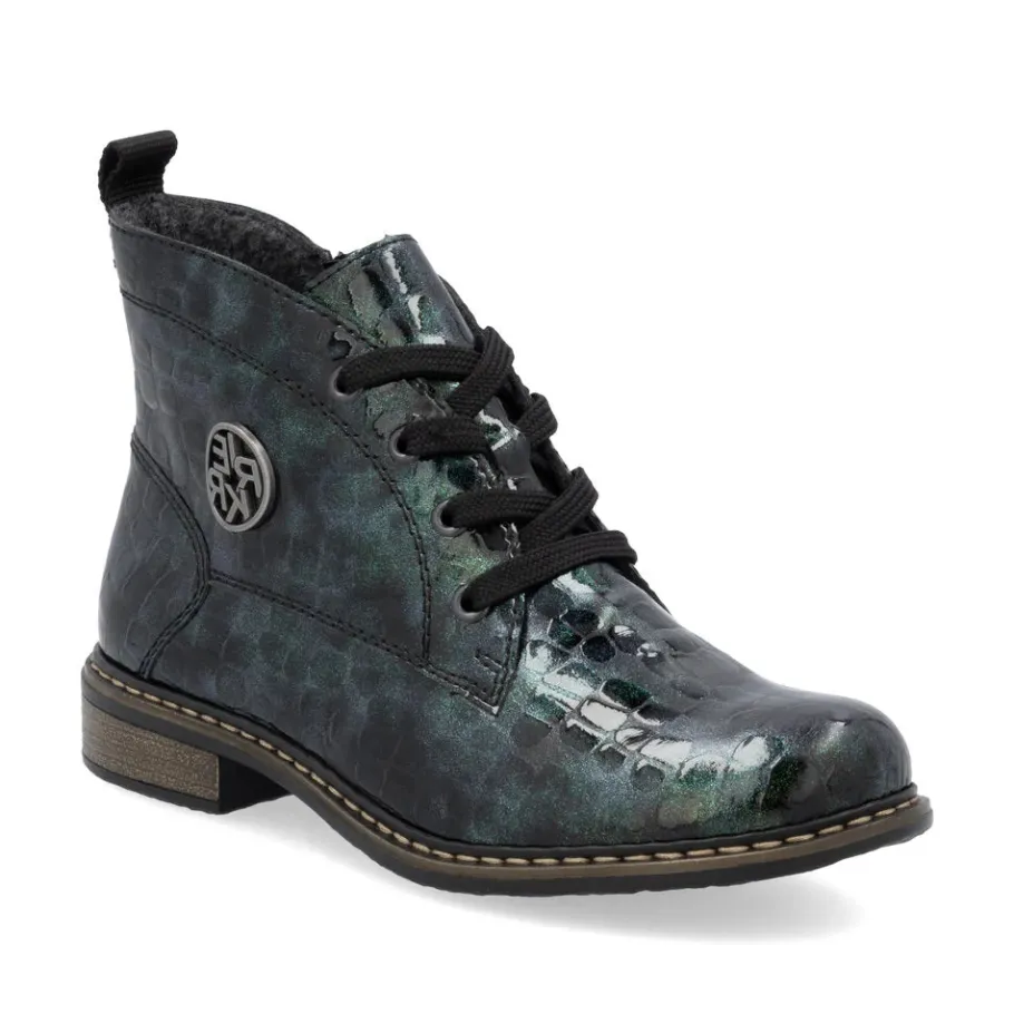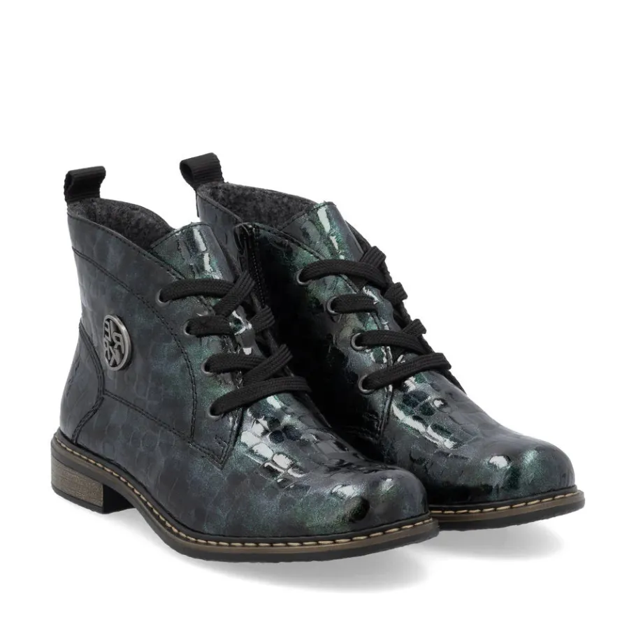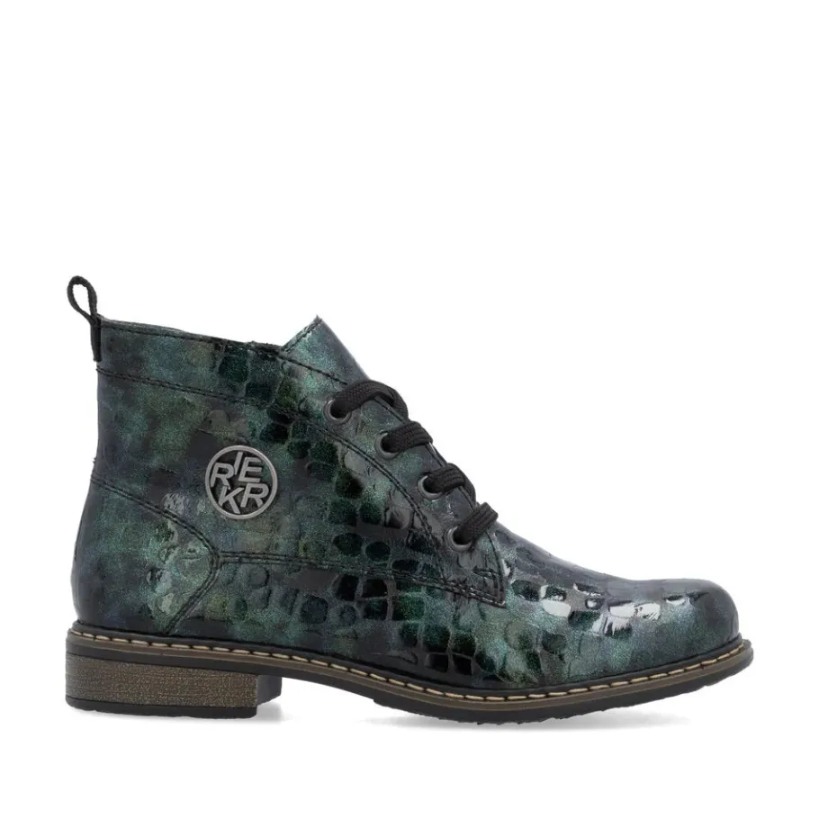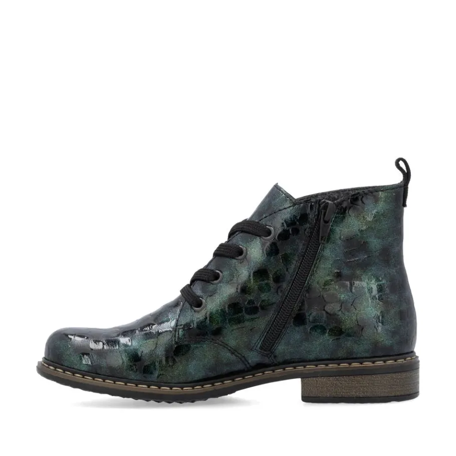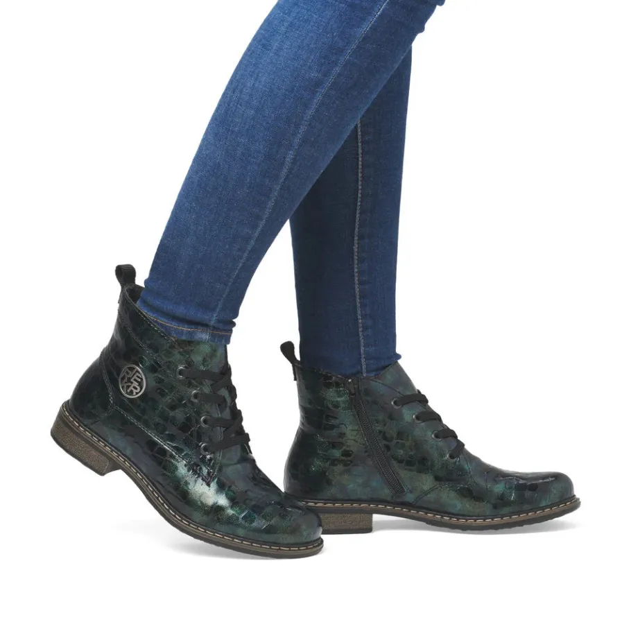 A must-have! These green lace-up ankle boots from Rieker guarantee a casual, on-trend look. Their stitched construction makes the shoe sturdy and the sole particularly flexible. The lacing complements the zipper, guaranteeing optimum support and a perfect fit. The logo on the side is an eye-catcher. Thanks to their lightweight, shock-absorbing sole, your feet will enjoy optimum comfort with every step. Their extra-soft sole is an added bonus. These shoes combine style and comfort to perfection!