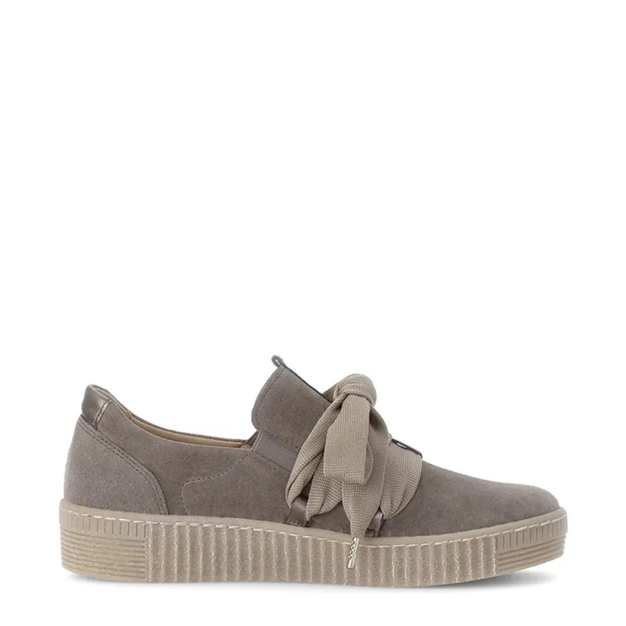 A perfect blend of style and comfort, this beige leather low shoe from Gabor is an everyday essential. Its premium leather upper, made from environmentally-friendly tanning, is combined with a leather lining for breathable comfort. Thanks to its Best Fitting last, it offers an enlarged forefoot landing surface, ideal for long-lasting well-being. The removable insole, partly made from recycled materials, rests on a 3.5 cm flat sole with a modern look. The wide elastic lace ensures a quick fit and a casual-chic look.