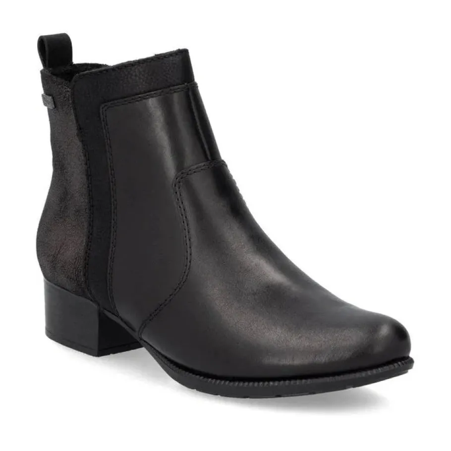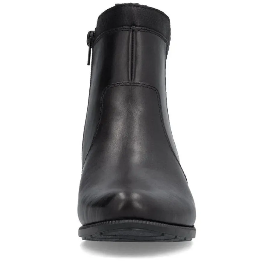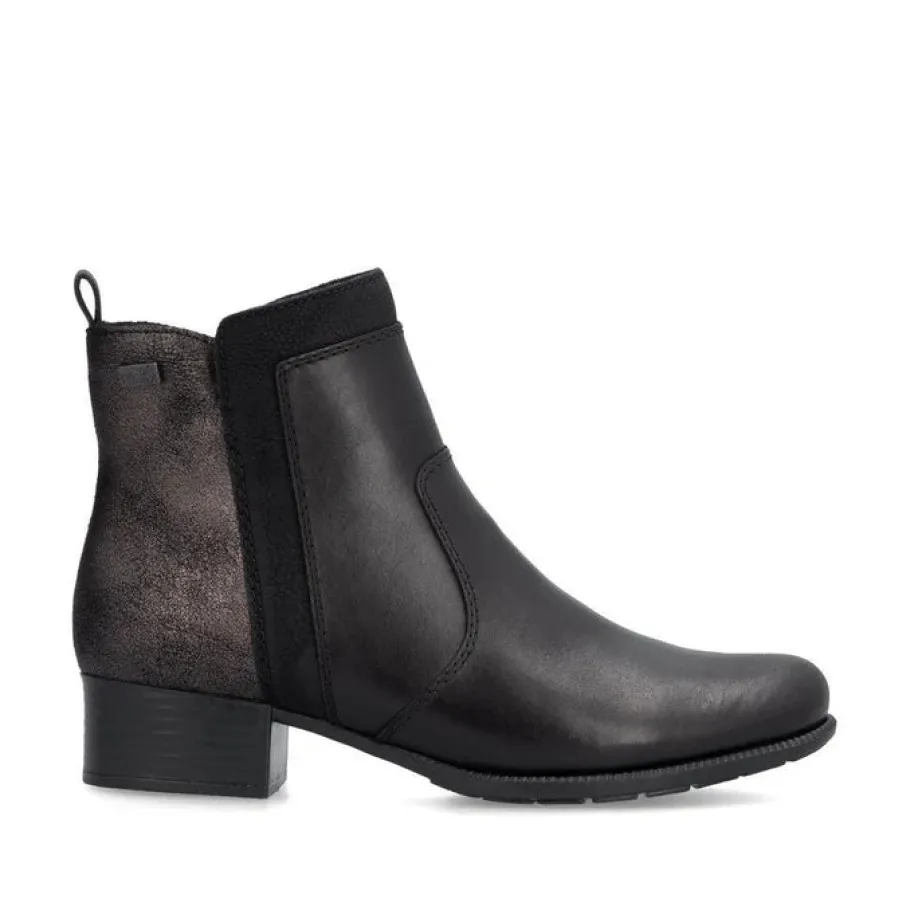 The Rieker 78658 is a chic yet comfortable bootie not to be missed this autumn. The upper is in black leather and has an easy-to-use side zipper for putting on and taking off. The bootie is lined with a short velvet fur lining on the inside to bring a little warmth to cooler days.