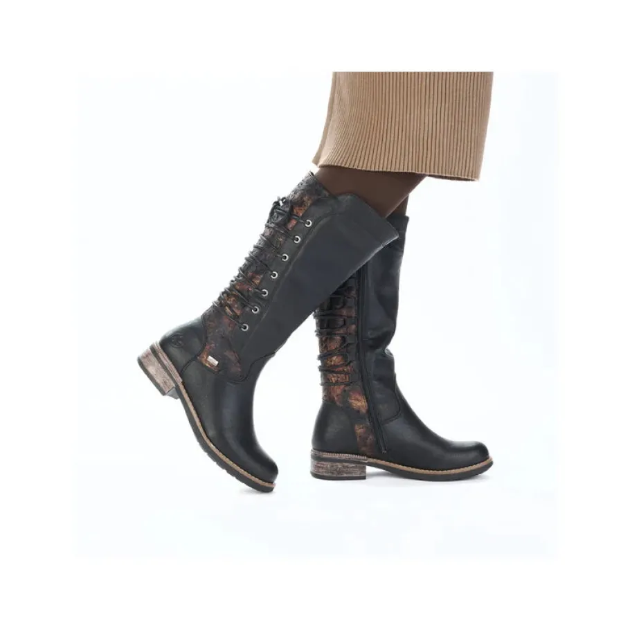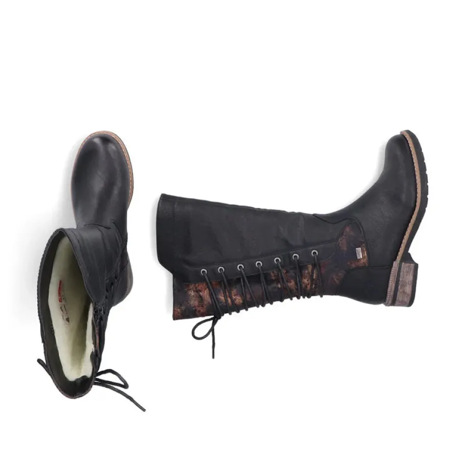 Comfortable and stylish – the perfect combo! You’ll never want to take off these Rieker high boots in black. The ingenious combination of laces and zipper offers optimum support and makes them easy to put on and take off. The grippy sole ensures good traction at all times. The warm, fluffy lining offers long-lasting protection against the cold, and the water-repellent upper provides effective protection against moisture and wind. So you can face cold days in style!