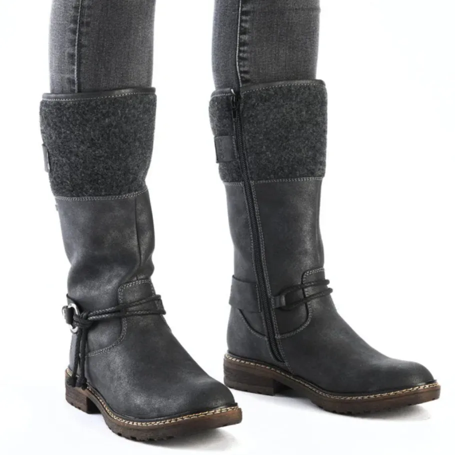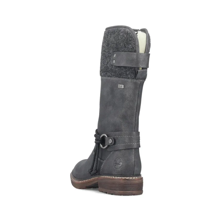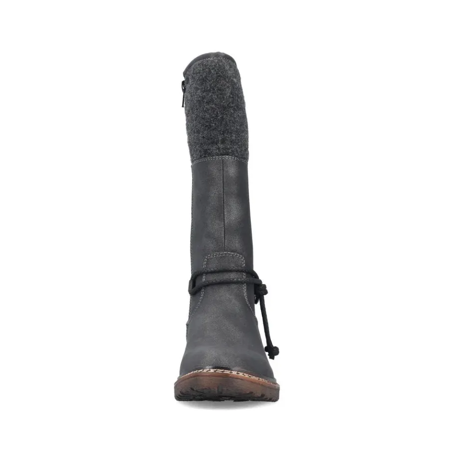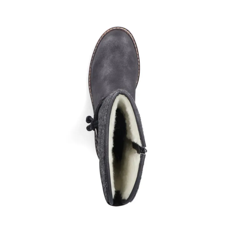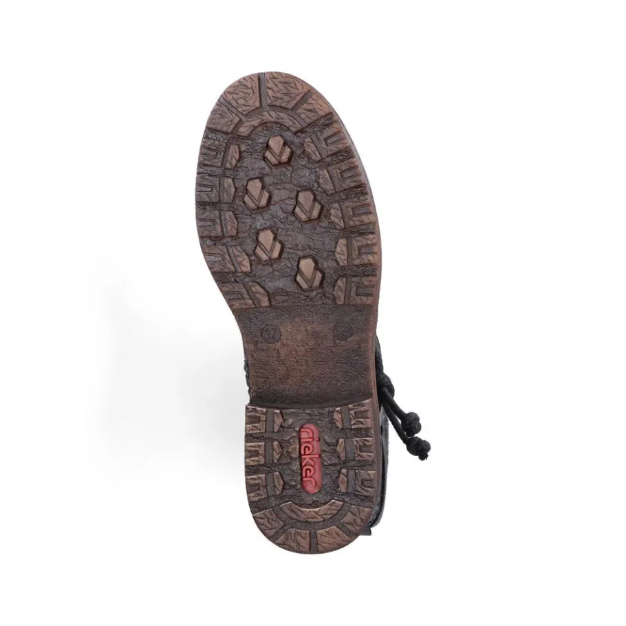 Cold weather doesn’t stand a chance! These asphalt-black Rieker high boots are carefully crafted. A side zipper makes them easy and comfortable to put on. The decorative black strap on the side adds a touch of originality. These boots feature a sturdy lug sole, offering excellent grip for sure-footed stepping. The warm, plush lining offers long-lasting protection against the cold, while the water-repellent upper protects against moisture and wind. Pure luxury!