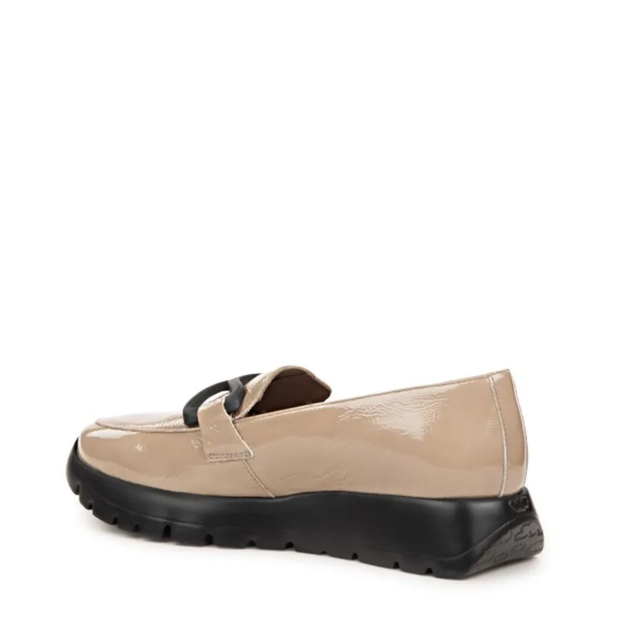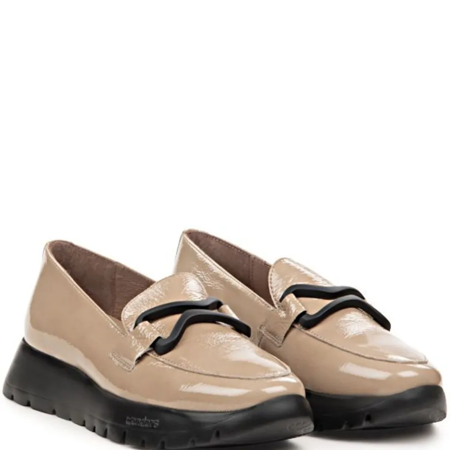 Add a modern, refined touch to your outfits with these platform loafers by Wonders. Crafted from quality patent leather in an elegant beige hue, they feature matte black trim on the vamp, providing a graphic contrast. Their 35 mm rubber outsole offers comfort and stability, while the removable leather insole with memory gel ensures optimal cushioning all day long. Lined with leather and textile, these moccasins combine contemporary style with exceptional comfort, for a polished look every day.