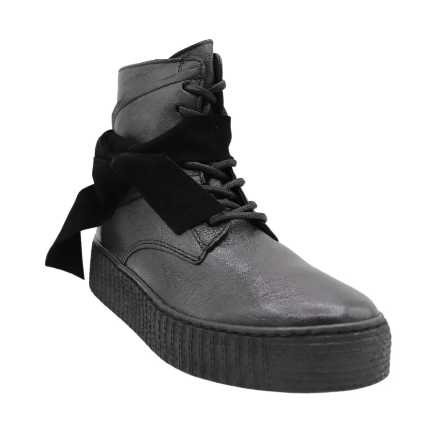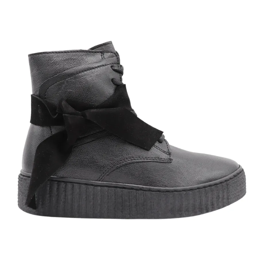 - Leather boots with suede details