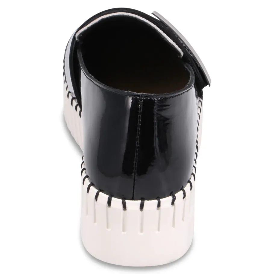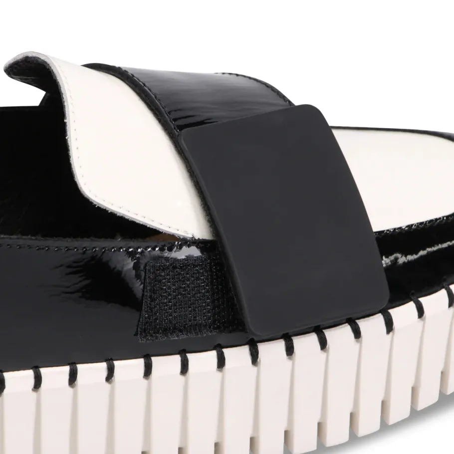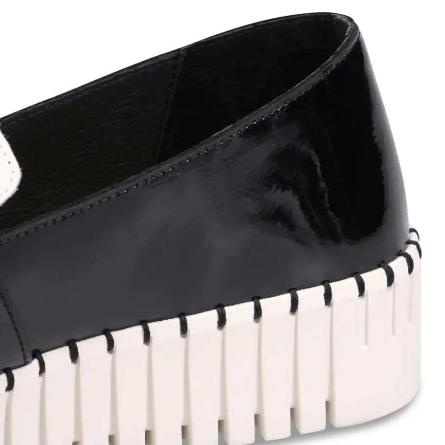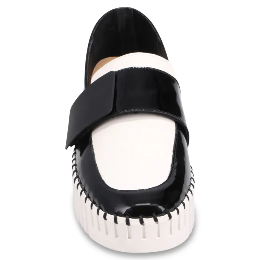 The future meets fashion with this bold platform loafer. Featuring a sculptural embossed sole and sleek upper, Belenna relies on striking details and uncompromising design. Its wide oversized strap adds a graphic touch, while the thick platform offers height without sacrificing comfort. This is the kind of shoe that doesn’t just walk into a room – it makes a statement.