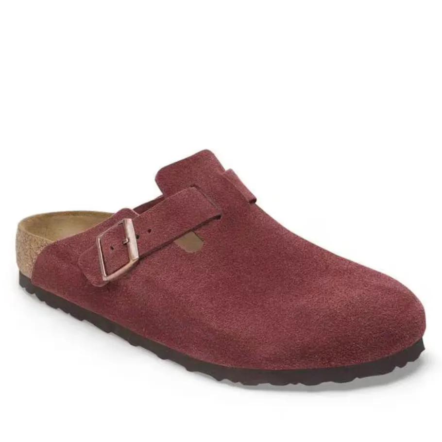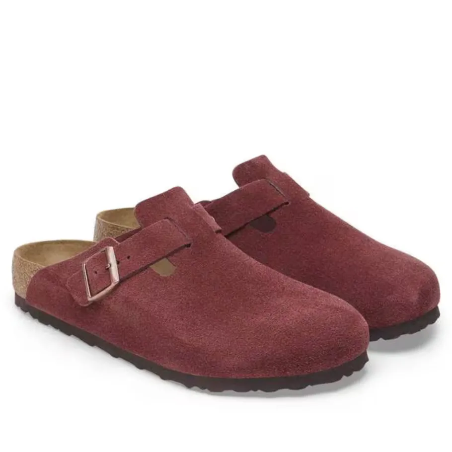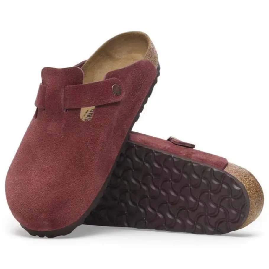 Classic and as comfortable as ever, the Boston clog has become a coveted year-round staple. Soft suede adds a touch of natural casualness, while a geometric print on the footbed lining adds a note of surprise. This model features the famous BIRKENSTOCK® anatomical footbed, which adapts to your foot for unique everyday comfort.