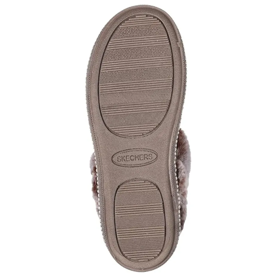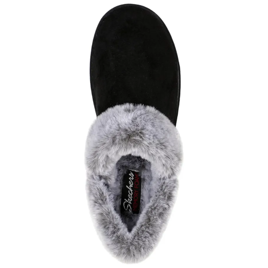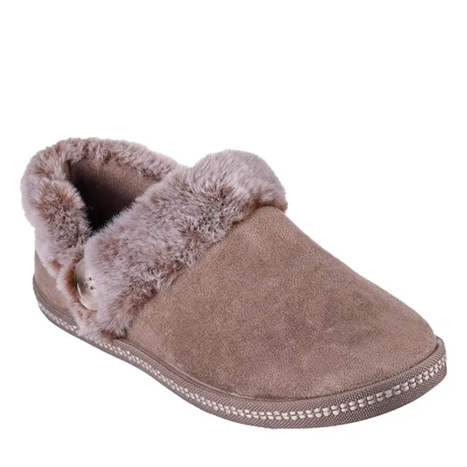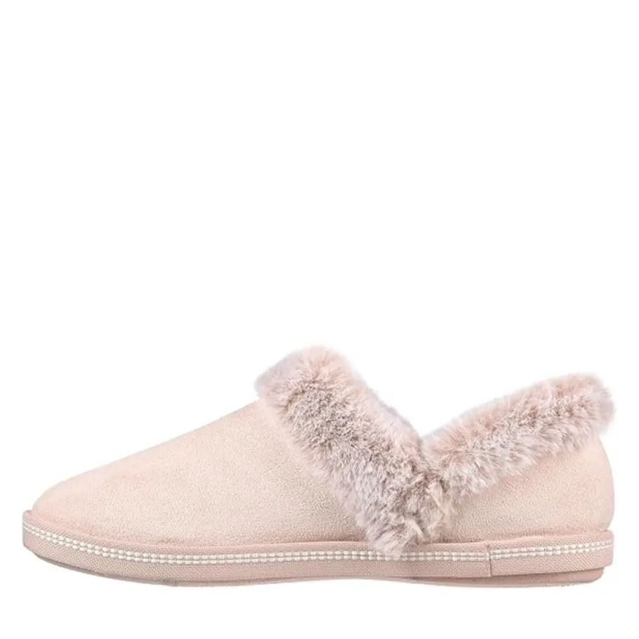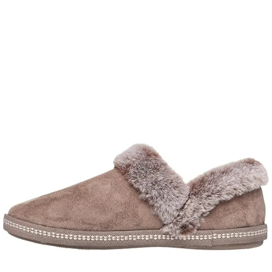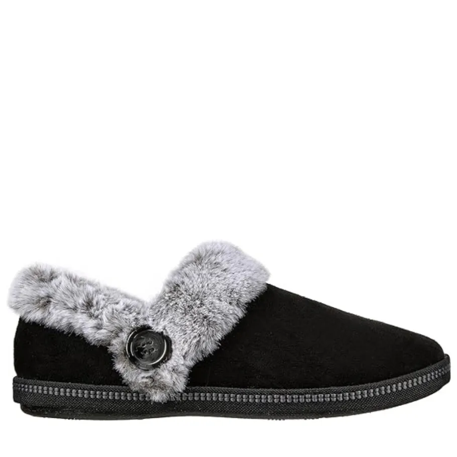 - Contrast faux fur collar and instep trim