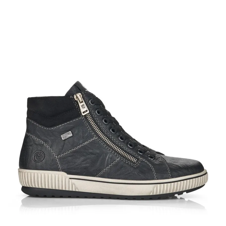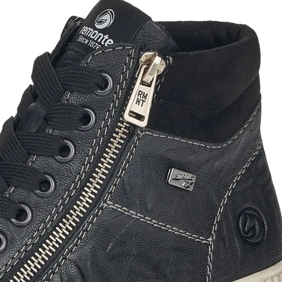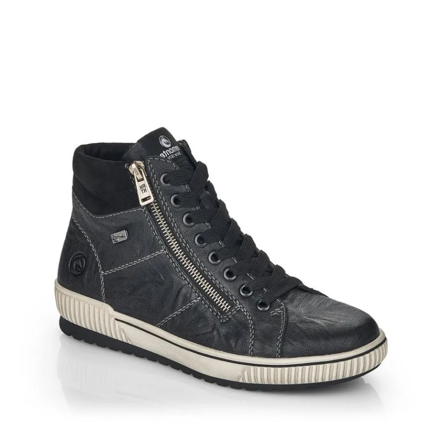 Clean up your act! These Remonte lace-up ankle boots in smooth leather are sure to win you over. The lacing completes the zipper, guaranteeing optimal support and a perfect fit. Contrasting beige stitching adds a touch of originality. The grippy, shock-absorbing sole, combined with the removable, cushioned insole, provides a feeling of well-being with every step. The comfort width gives you more room in the shoe. Thanks to remonteTEX technology, these boots are water-repellent, making them suitable for all weathers. It couldn’t be more stylish!