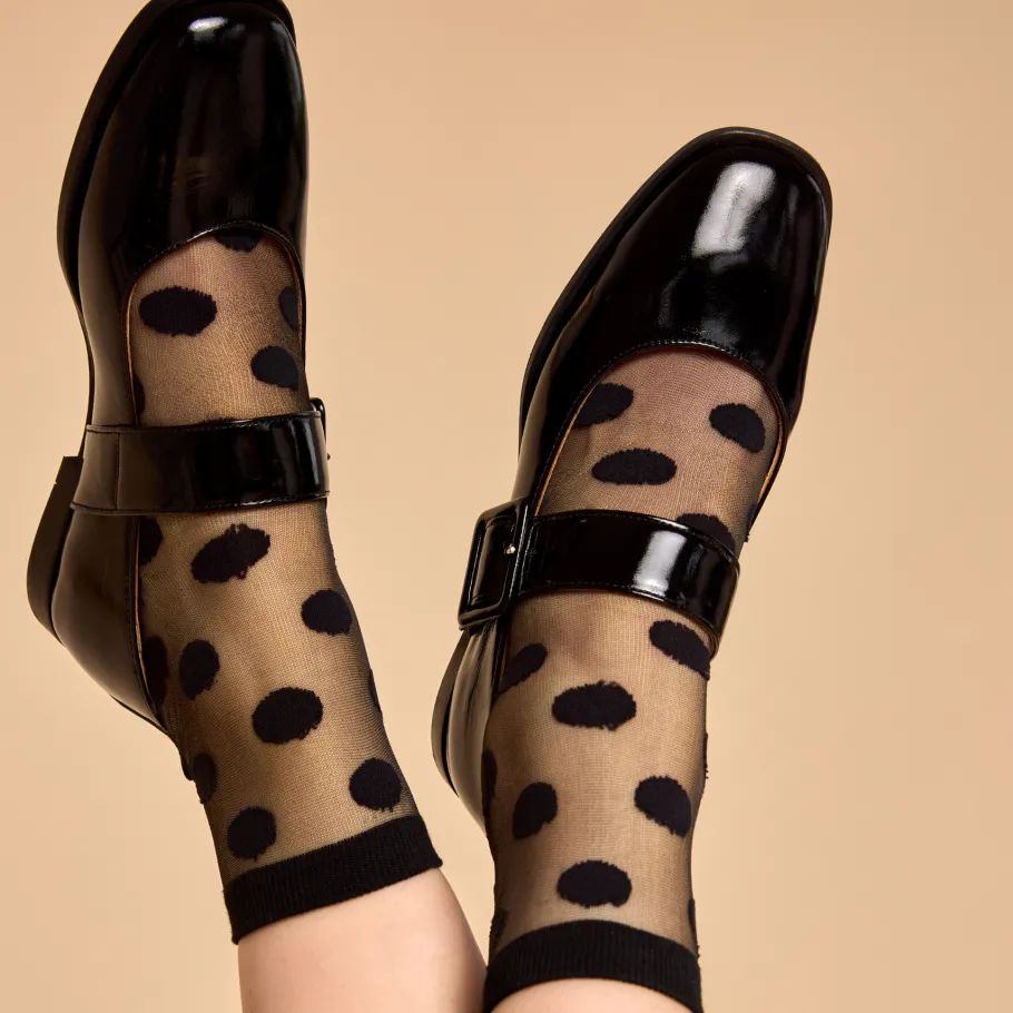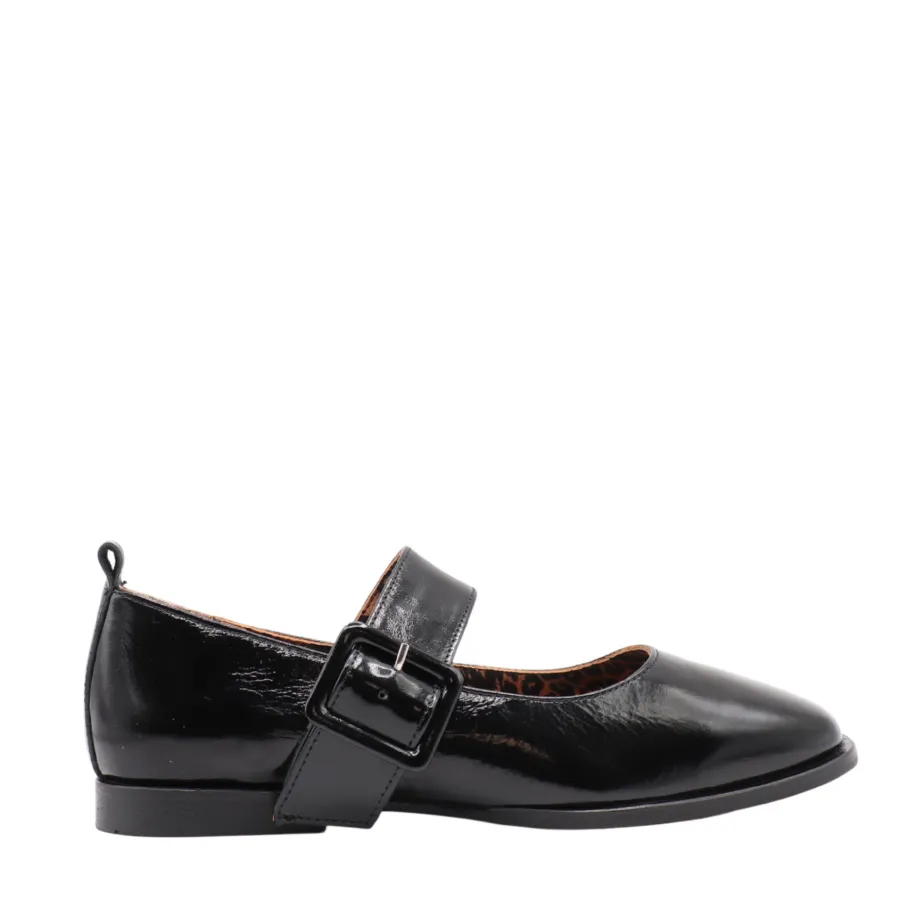 Jade ballerinas by Apropo revisit a classic with a modern twist. Crafted in patent leather, they feature a crossover strap adorned with a wide buckle that adds character and elegance. Their animal print inner lining is surprisingly original and offers stylish comfort for everyday wear.