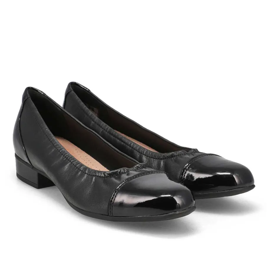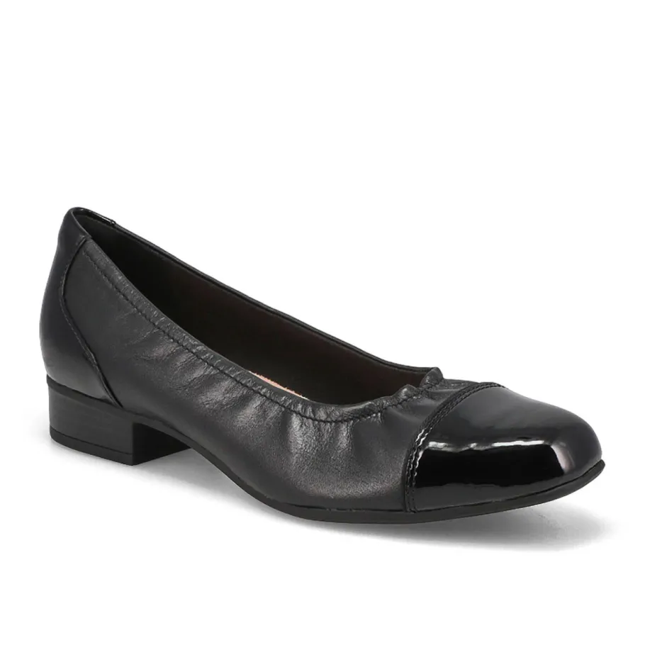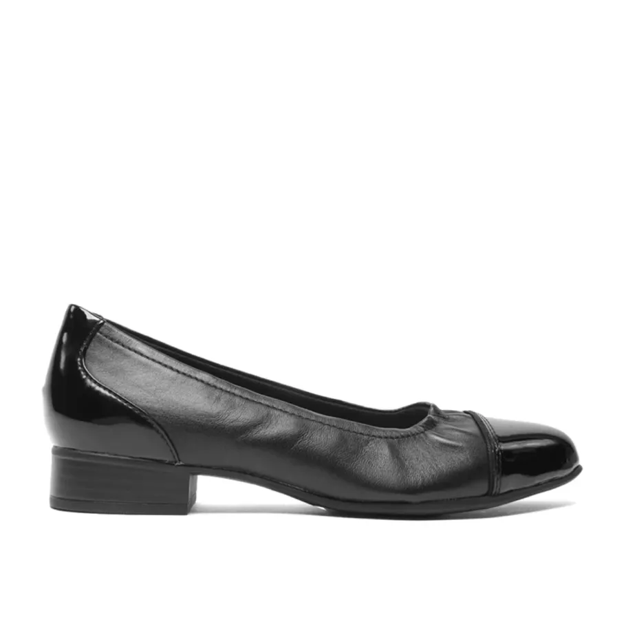 - Leather upper with patent leather toe