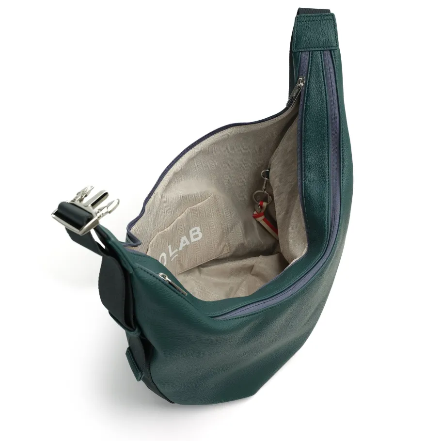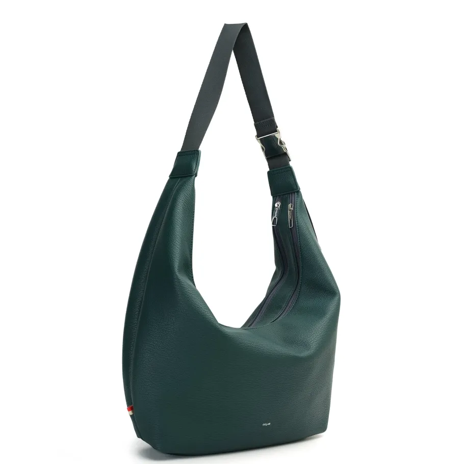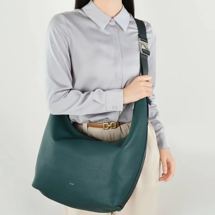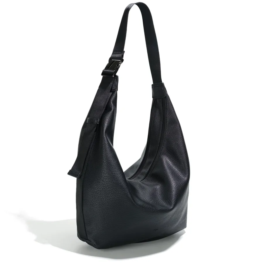 The tonal strap and buckle give this curved hobo a sporty feel of effortless luxury. Fits comfortably over the body or under the shoulder thanks to its adjustable shoulder strap.