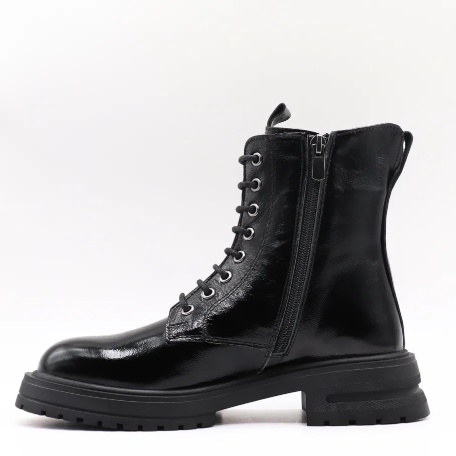 Bold and on-trend,Apropo ‘s Lazra boot features patent leather and a lace-up silhouette. Available in classic black or leopard print for an assertive style, it combines comfort and contemporary allure thanks to its sturdy notched sole. Made in Europe from quality materials, they’re the perfect boot for those who want to combine fashion with everyday functionality.