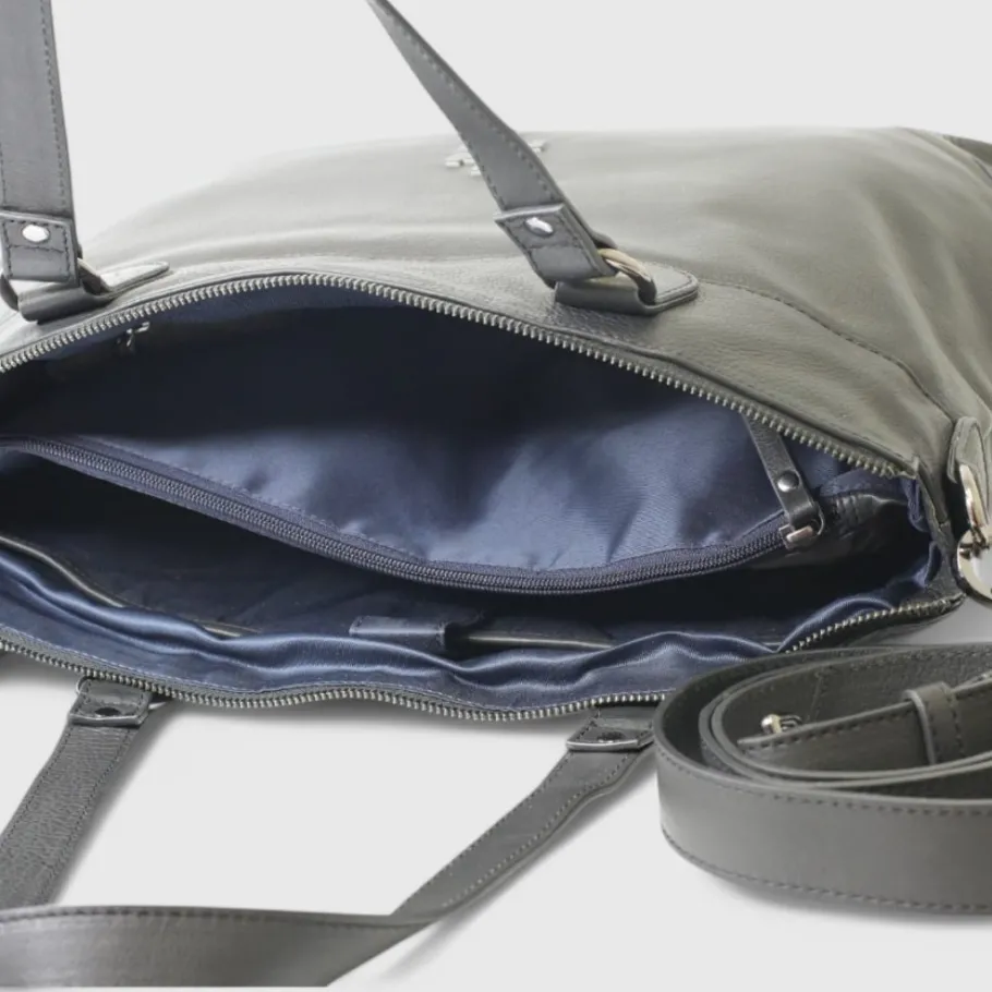 The LIQUIRIZIA tote bag from The Trend combines elegance and functionality in a genuine Italian leather design. With its large capacity and thoughtful compartments, it’s ideal for the office, travel or everyday use. Its padded pocket protects a 15″ laptop, while the embossed logo on the front adds a touch of sophistication.