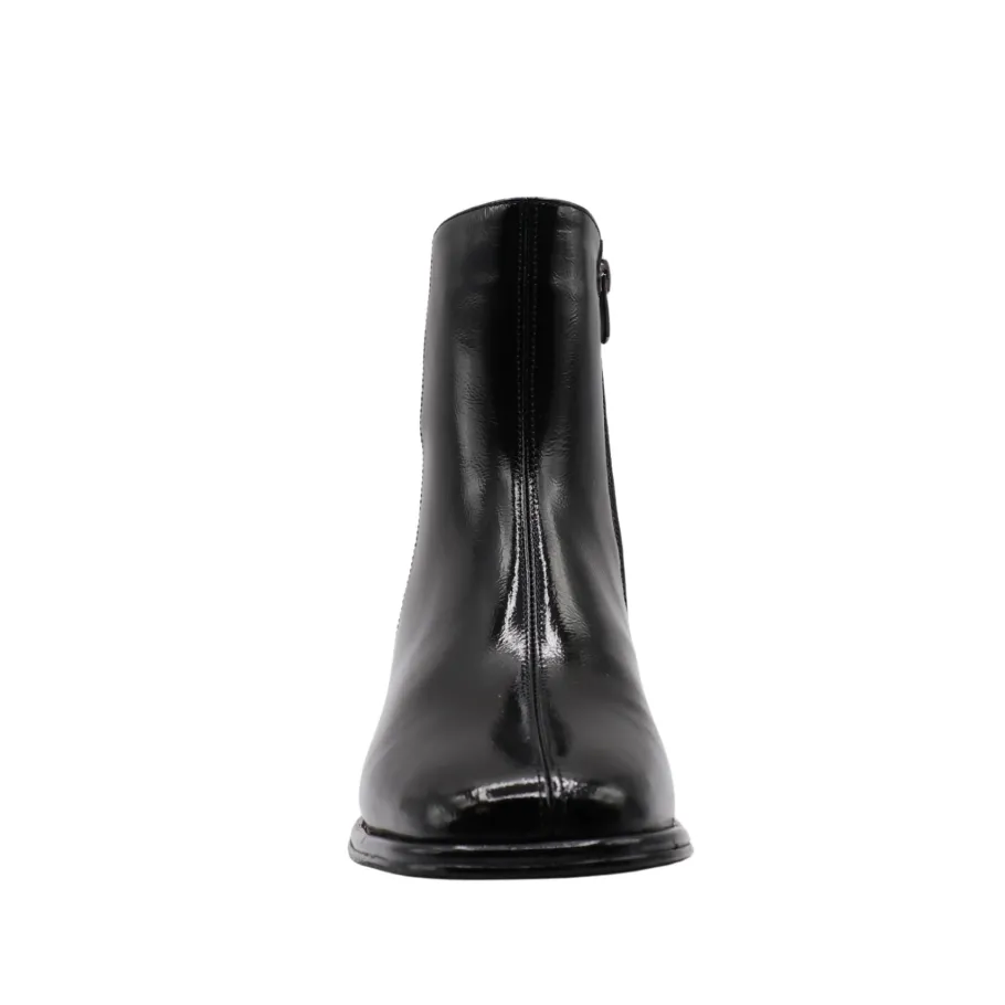 Lova boots by Apropo embody modern elegance with their shiny patent leather and minimalist silhouette. Their slightly pointed toe and low square heel add a chic, contemporary touch, ideal for enhancing your everyday looks or dressy outfits. A discreet zipper facilitates slip-on while maintaining a refined look.