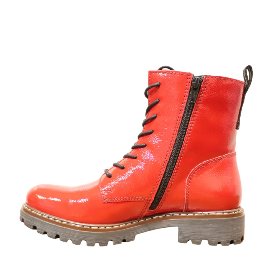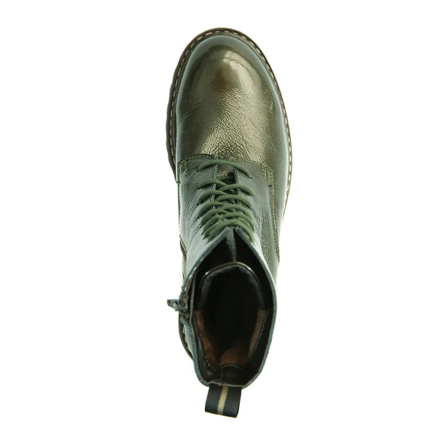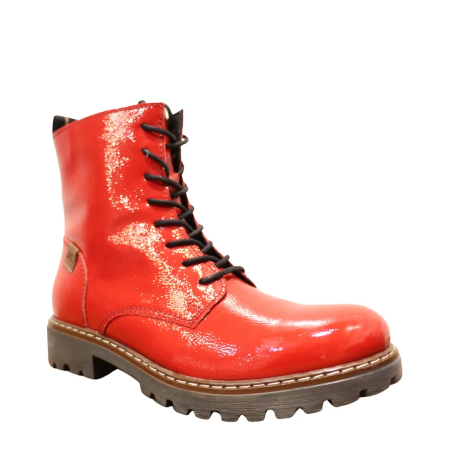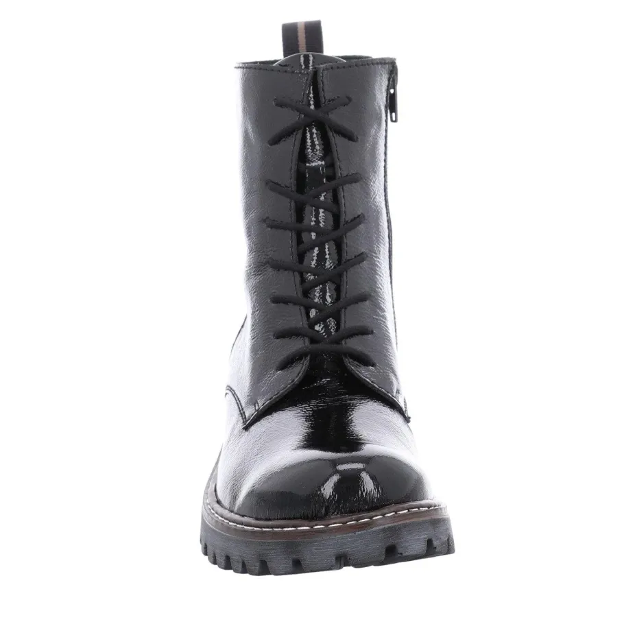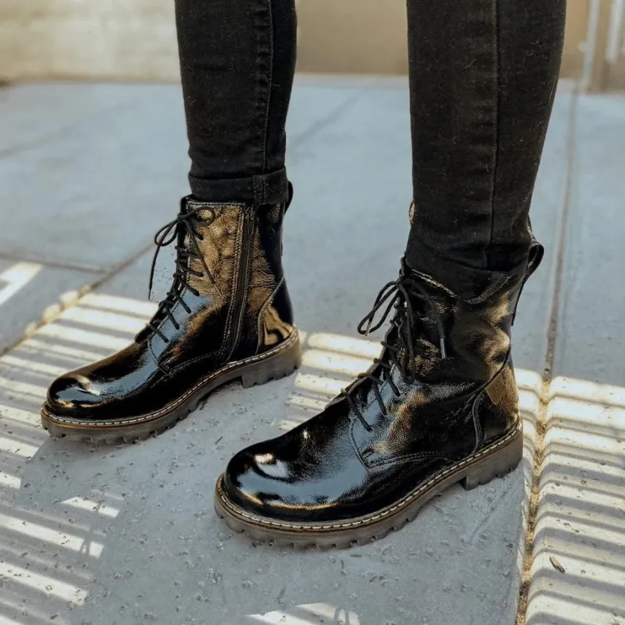 “All the retro style, without the weight of thick soles. Our patent leather combat boot is ultra-light and flexible.
