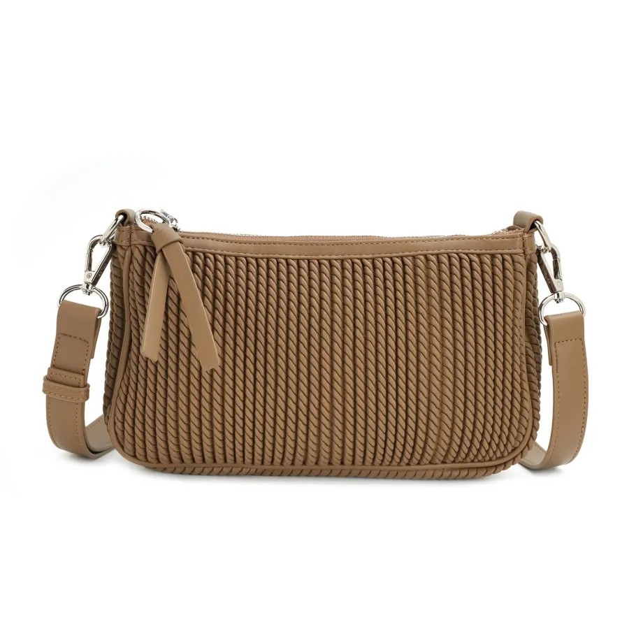 Rivulet’s textured vegan leather adds a distinctive touch to this classically styled shoulder bag.