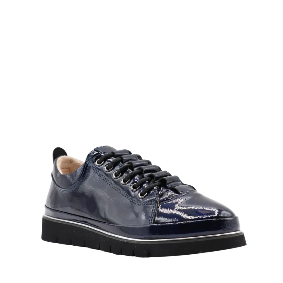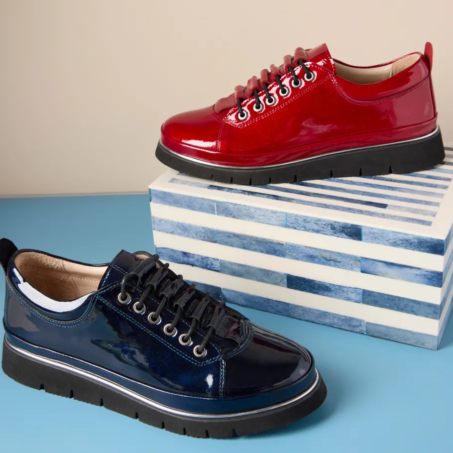 Combine boldness and comfort with Maude, Apropo’s patent leather sneaker. Available in deep blue and vibrant red, this model revisits the classic sports shoe with a touch of shine and sophistication. Its thick, supple sole ensures lasting comfort, while metal eyelets and patent finish give it a modern, urban look.