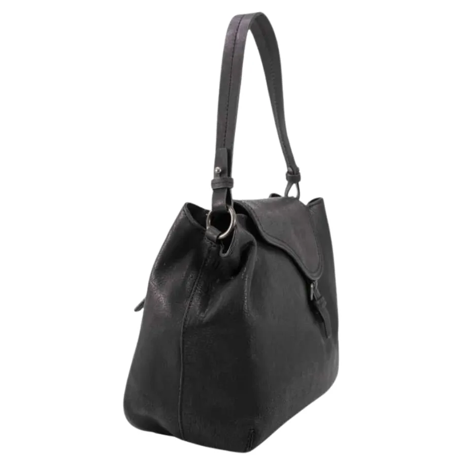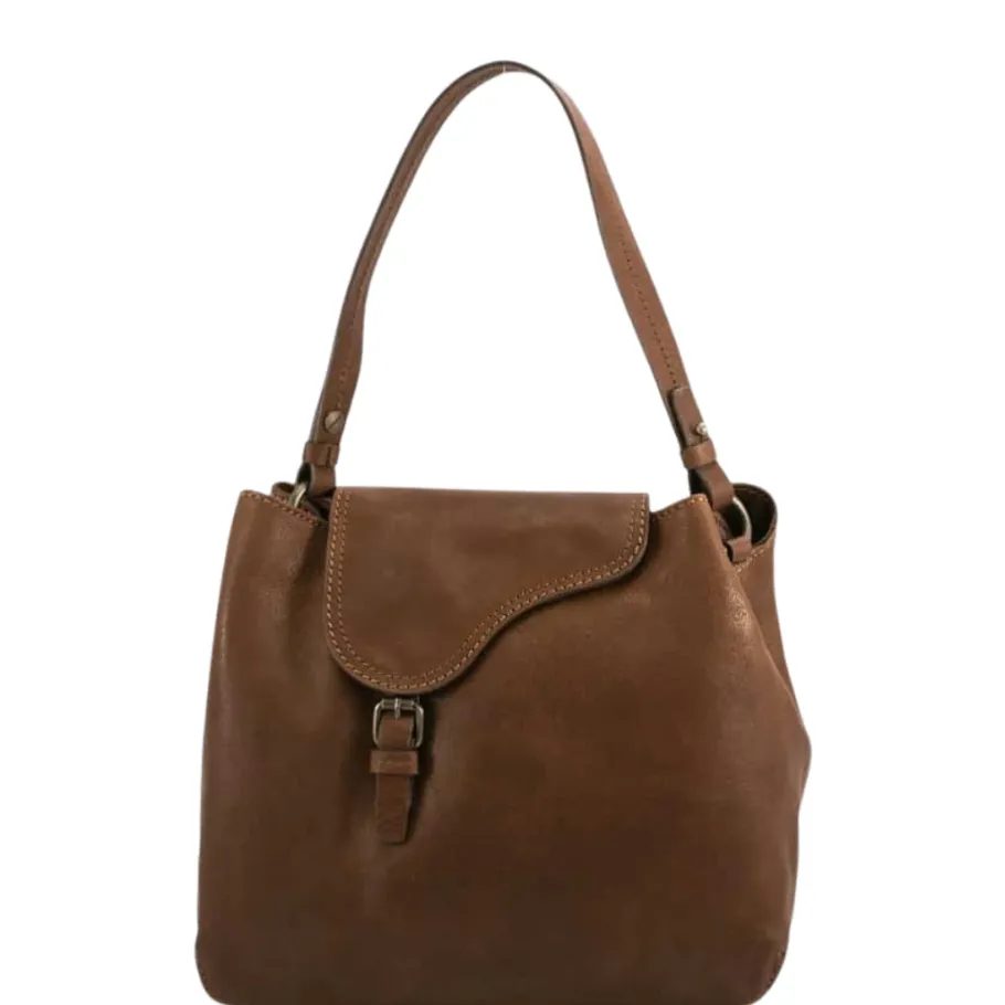- Decorative flap with magnetic closure covering main compartment