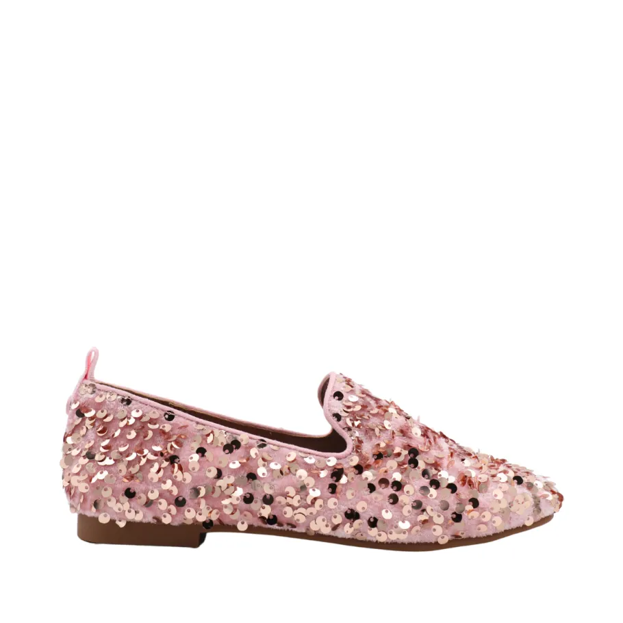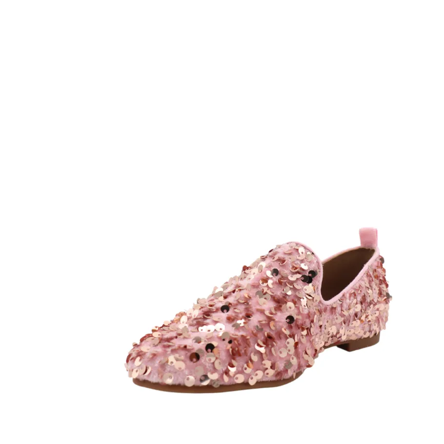Add a touch of sparkle and sophistication to your outfits with the SISSY loafers from APROPO. These refined shoes feature glittering pink and gold sequins, perfect for illuminating your style and asserting your elegance.