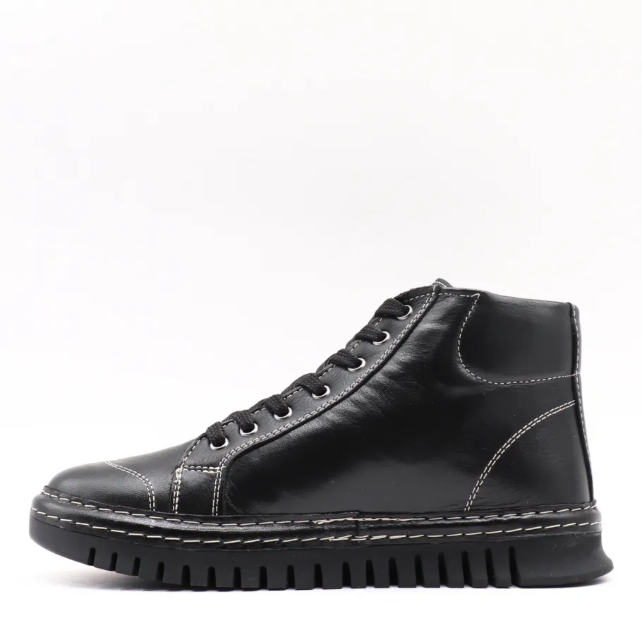 practical. Designed in genuine leather and made in Europe, it offers a casual look with contrasting stitching and a flexible sole with deep grooves for better grip. Featuring a side zipper, they’re easy to slip on for everyday wear. Available in timeless black or natural leather, it’s a versatile shoe that combines style and functionality.