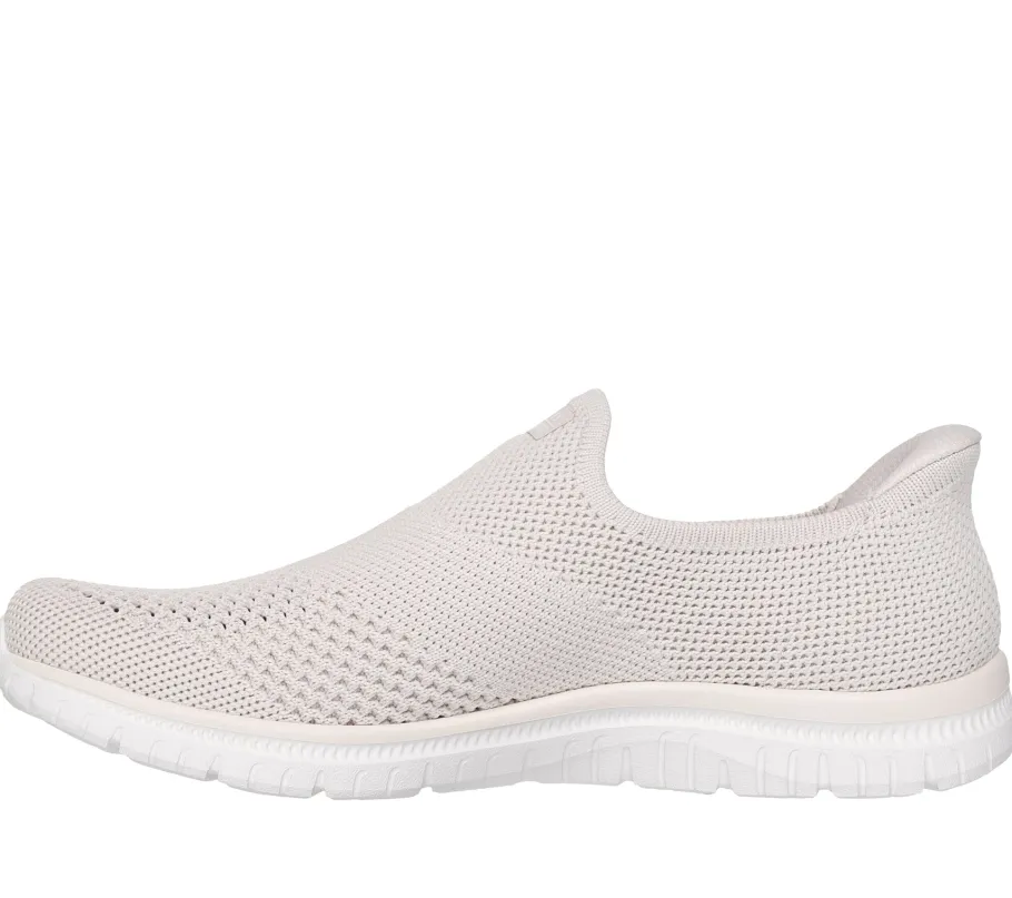 Slip into effortless comfort and style with the Skechers Hands Free Slip-ins® : Virtue – Demure. This innovative laceless design, engineered with our exclusive Heel Pillow™ technology, provides a convenient and secure hands-free slip-on. Its Stretch Fit® stretch-knit upper hugs the foot perfectly for sock-like comfort, while the Air-Cooled Memory Foam® insole offers breathable cushioning with every step. Lightweight, machine-washable and 100% vegan, this versatile shoe is perfect for your active days while staying stylish.