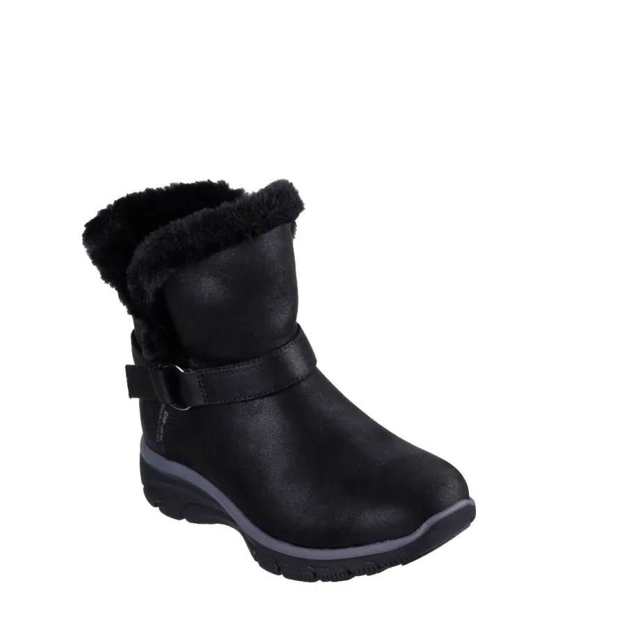 Designed with our Heel Pillow® technology, this boot features a vegan leather upper treated with 3M® Scotchgard®, a faux fur collar and lining, wrap-around buckle detail, and a cushioned Skechers Air-Cooled Memory Foam® insole.