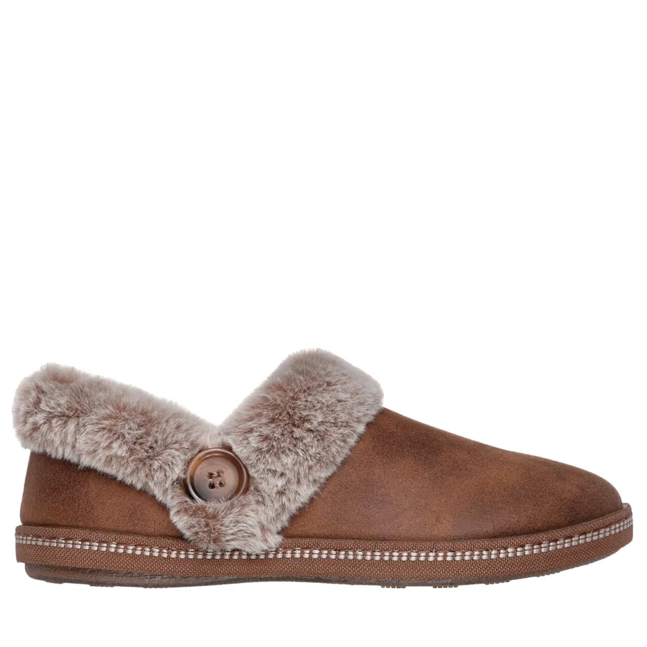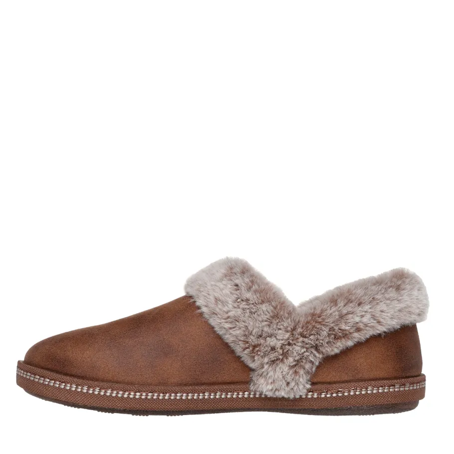 Enjoy cozy, casual comfort all season long with Skechers Cozy Campfire – French Toast 2. This comfortable, casual slipper features a vegan leather upper with faux fur trim and a comfortable Skechers Memory Foam™ cushioned footbed. Vegan leather with faux fur trim and lining