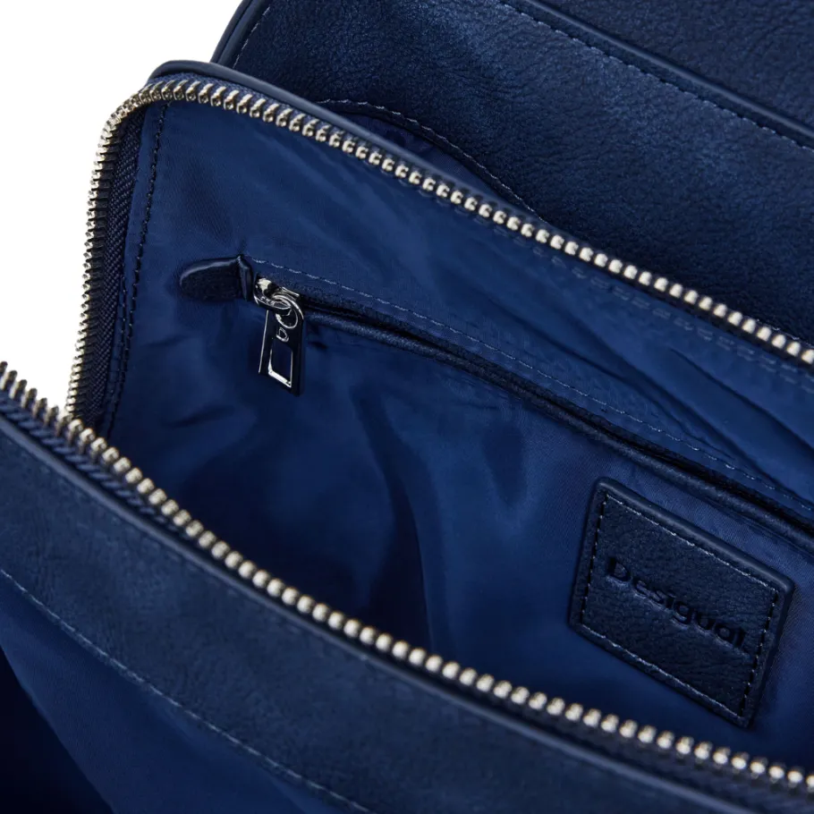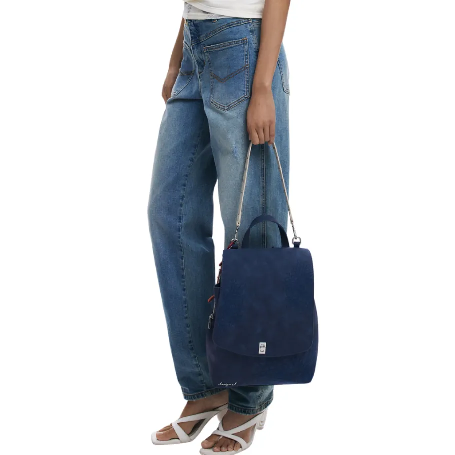 Leatherette backpack with engraved mandala details, zipper closure and large flap with detachable handle converts to a bag.
