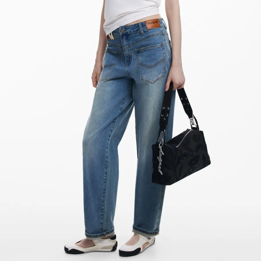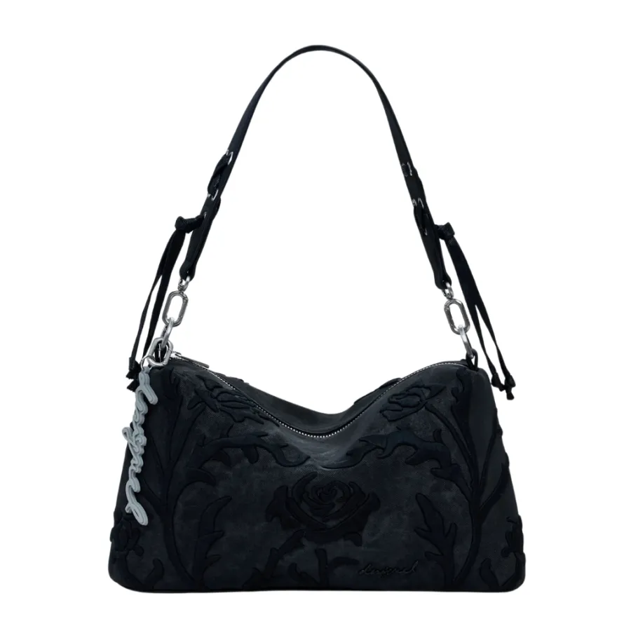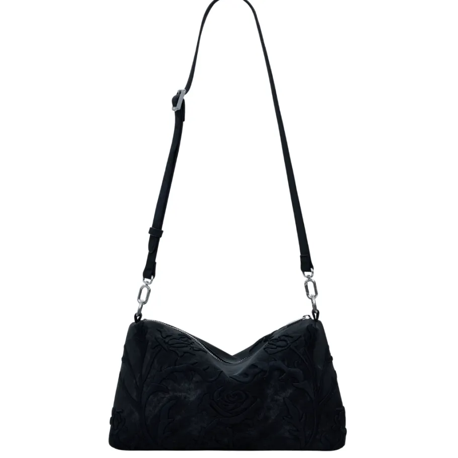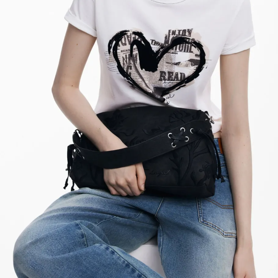 Medium-sized handbag in plain imitation leather, with 3D relief engravings and zip fastening.