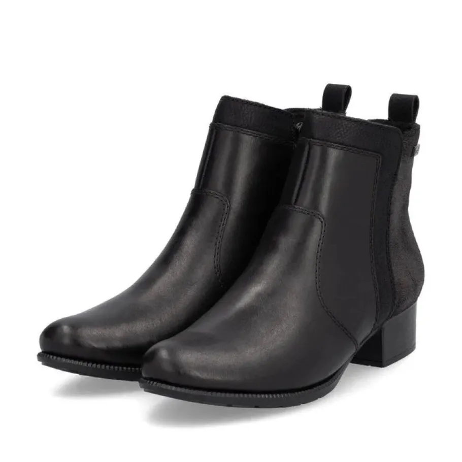 The Rieker 78658 is a chic yet comfortable bootie not to be missed this autumn. The upper is in black leather and has an easy-to-use side zipper for putting on and taking off. The bootie is lined with a short velvet fur lining on the inside to bring a little warmth to cooler days.