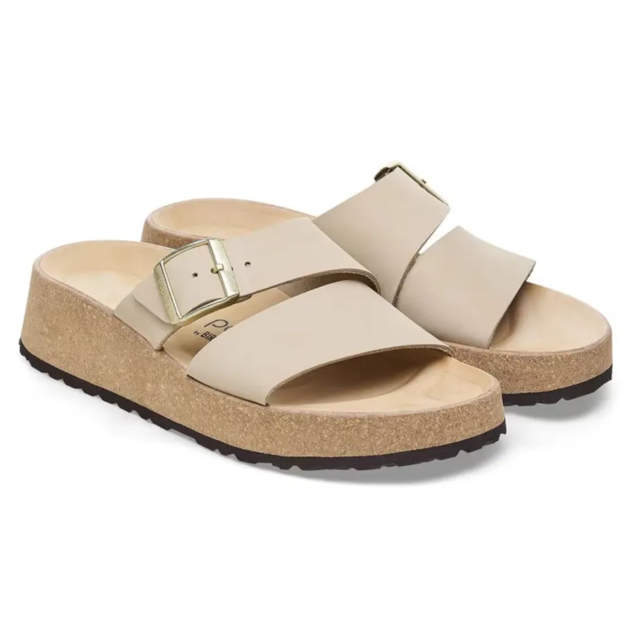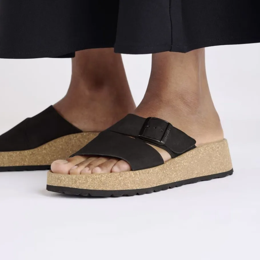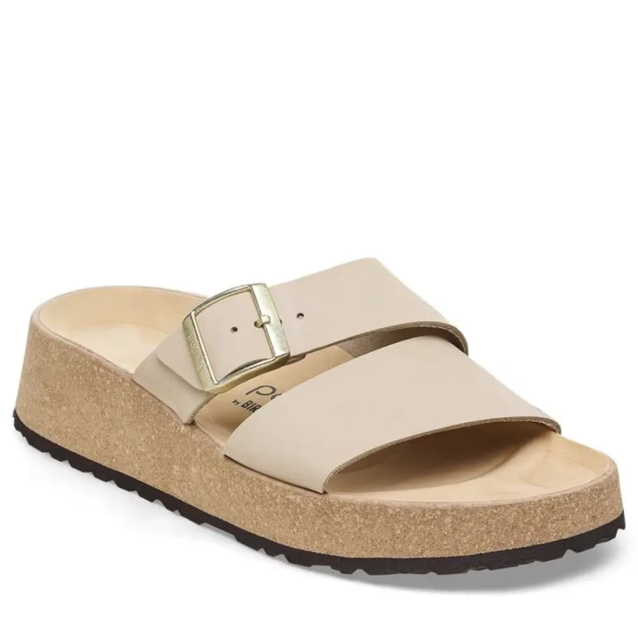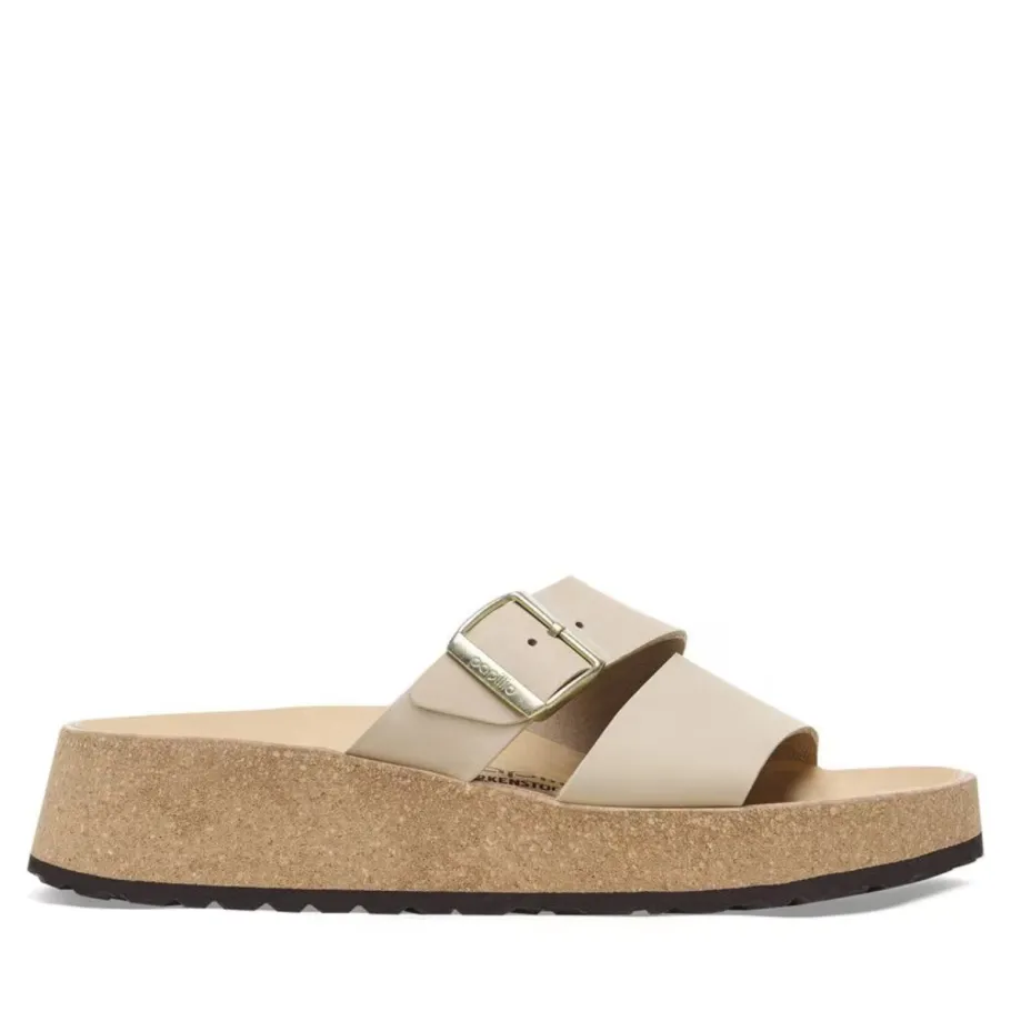 The latest Papillio® wedge from BIRKENSTOCK®. The Almina ‘s wide leather straps give you greater stability, while allowing your style to stand out. It features BIRKENSTOCK®’s classic cork wedge sole and anatomical footbed for all-day support.