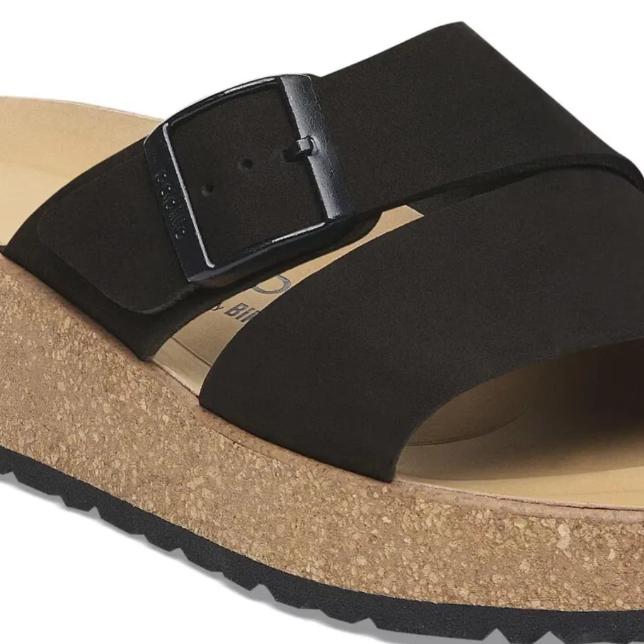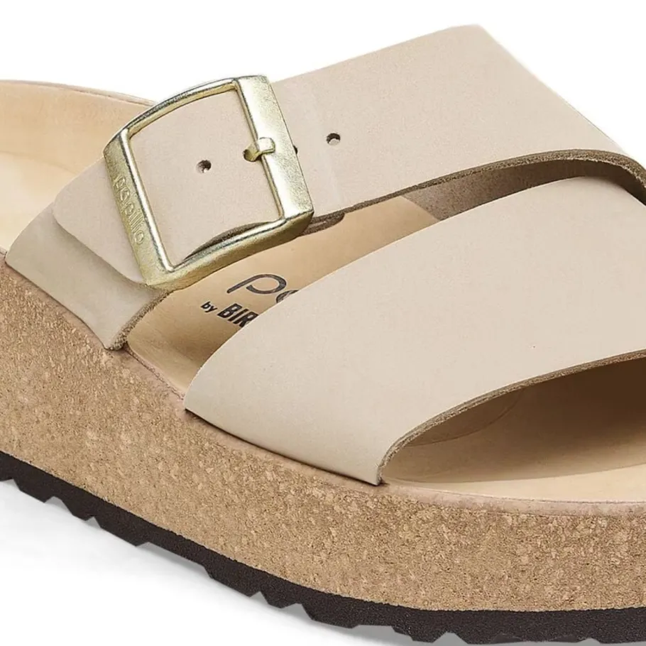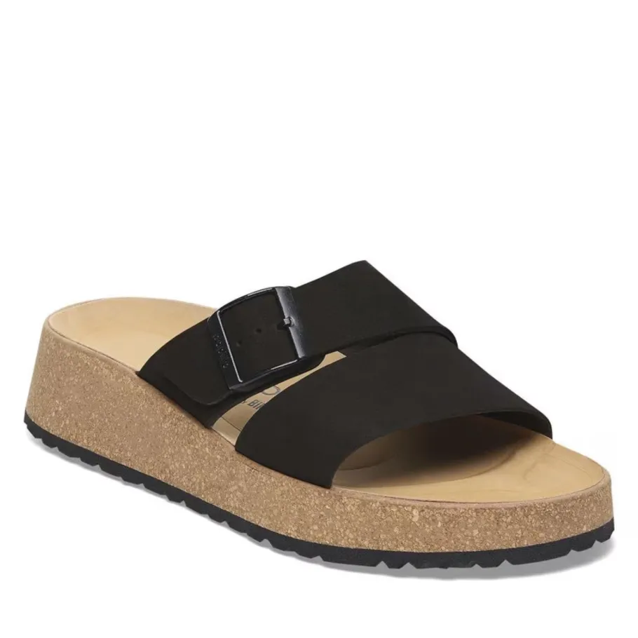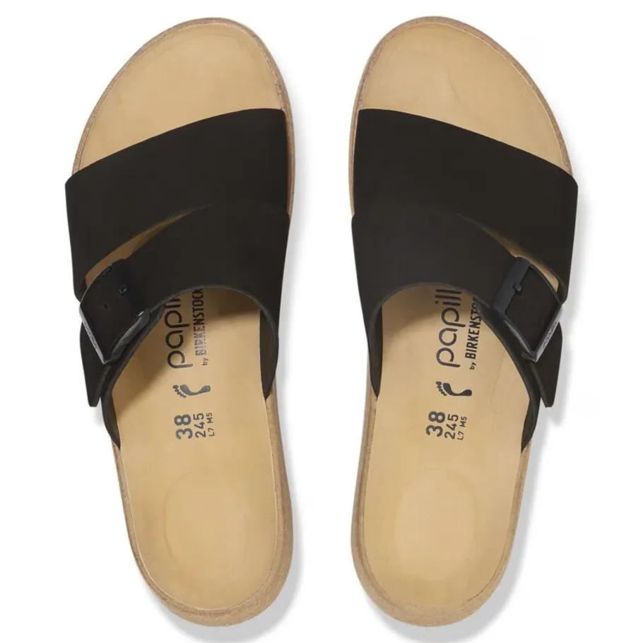 The latest Papillio® wedge from BIRKENSTOCK®. The Almina ‘s wide leather straps give you greater stability, while allowing your style to stand out. It features BIRKENSTOCK®’s classic cork wedge sole and anatomical footbed for all-day support.