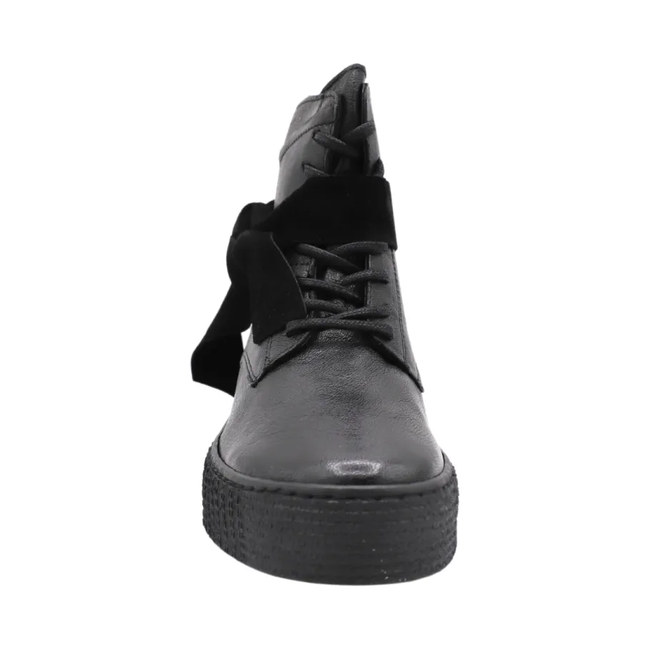 - Leather boots with suede details