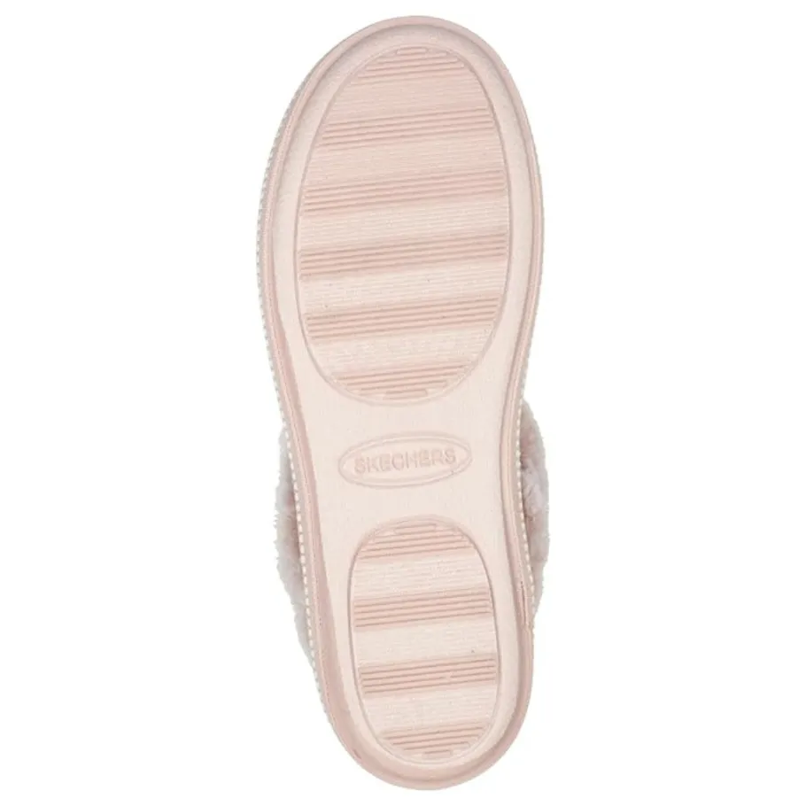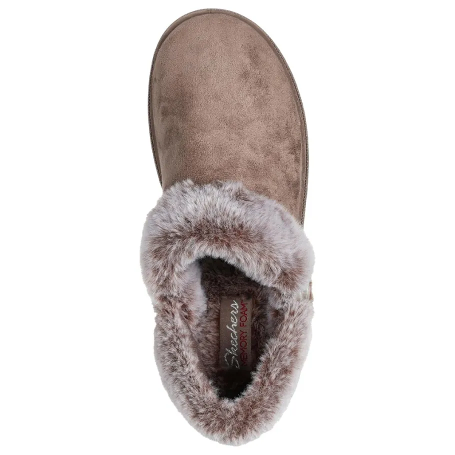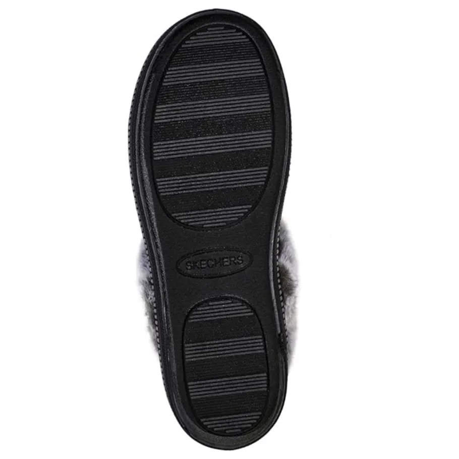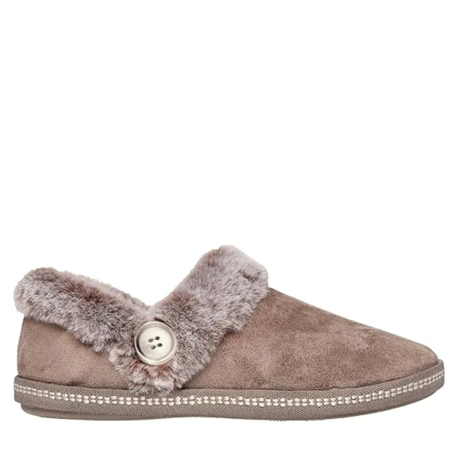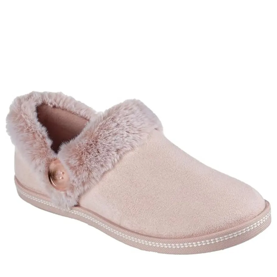 - Contrast faux fur collar and instep trim