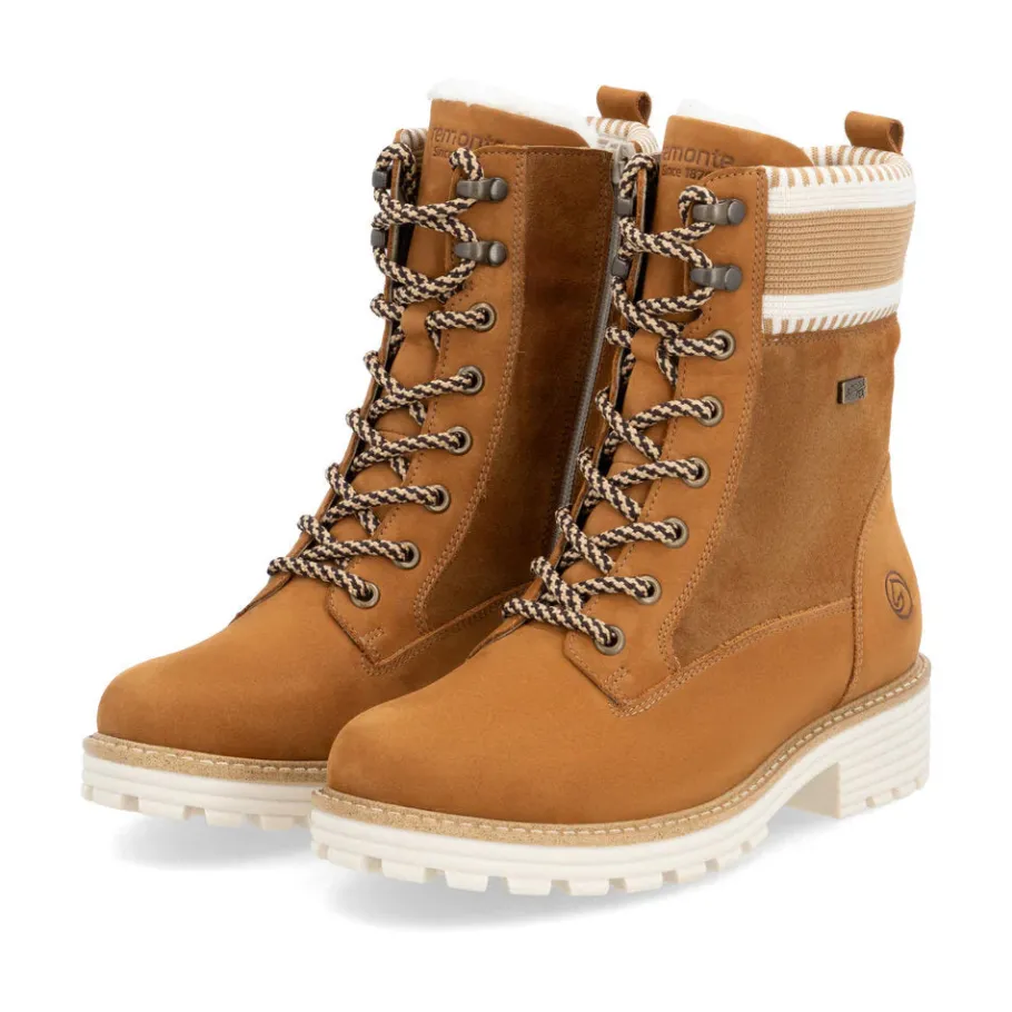 These remonte boots pamper your feet with an inner lining as soft as a cloud. The lacing is completed by a zipper, offering optimum support and a perfect fit. The trendy collar design adds an extra fashionable touch.