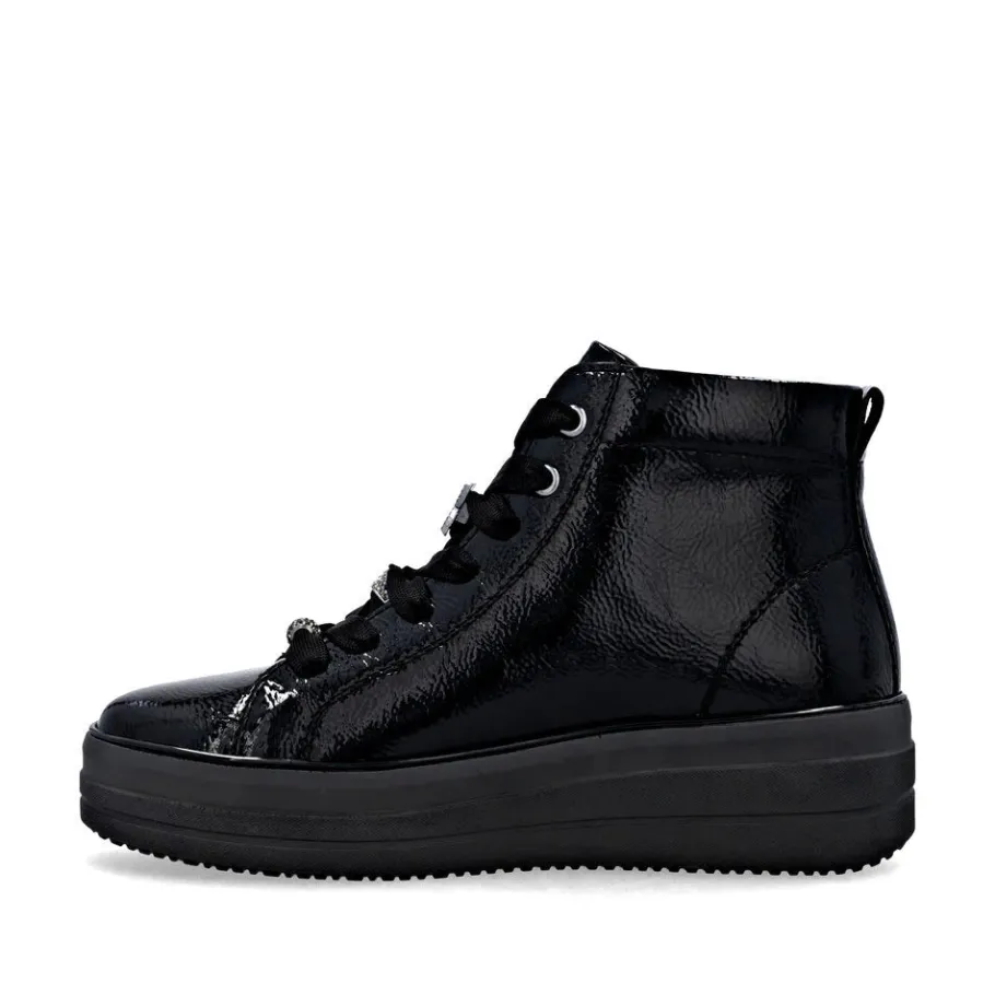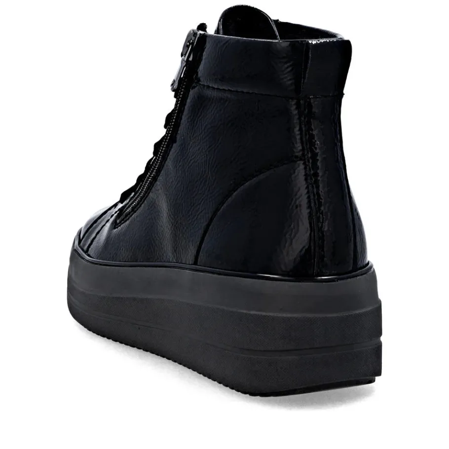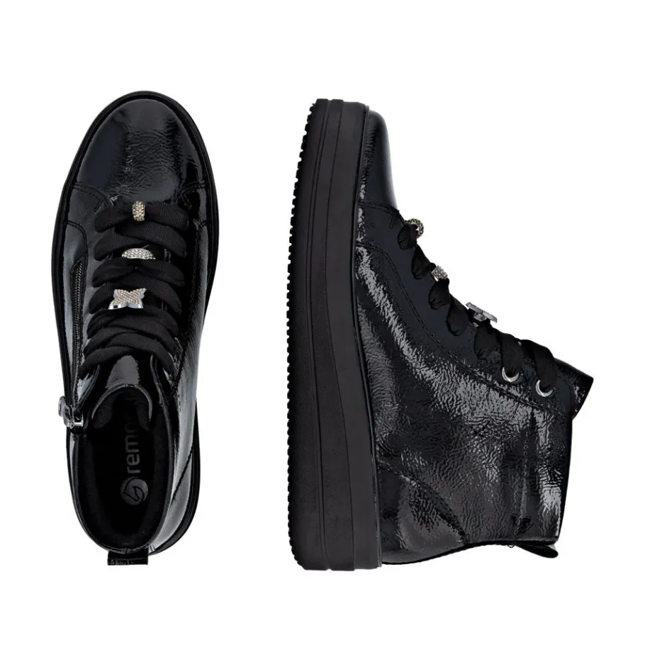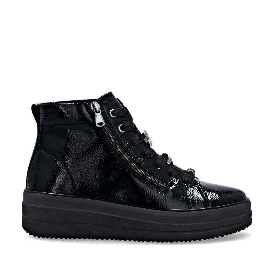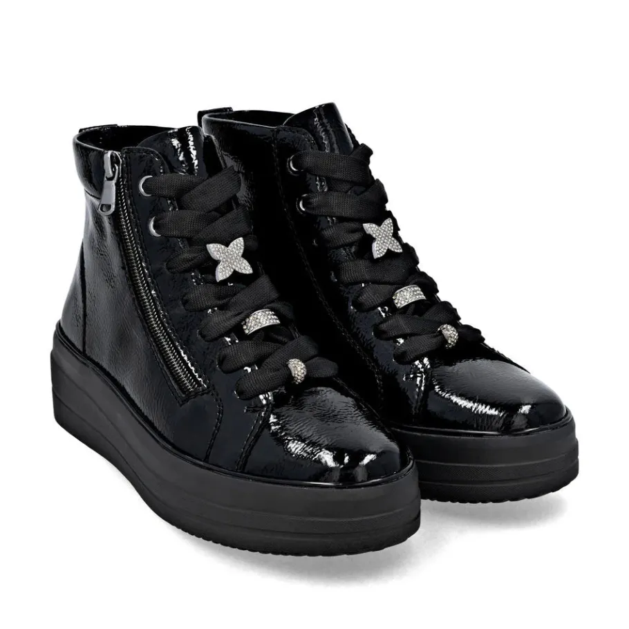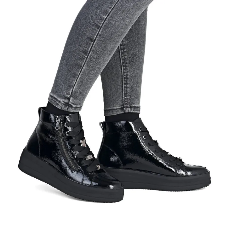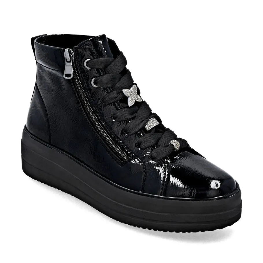 The D1C72 model seduces with its perfect blend of urban elegance and absolute comfort. Designed for active women looking for both style and everyday comfort, this patent leather bootie adds a modern touch to all your outfits. Thanks to its adjustable lacing and inside zipper, it’s easy to slip on and adapts perfectly to your feet. Ideal for fall and winter, its lightweight sole offers good grip and pleasant cushioning, even on long walking days.