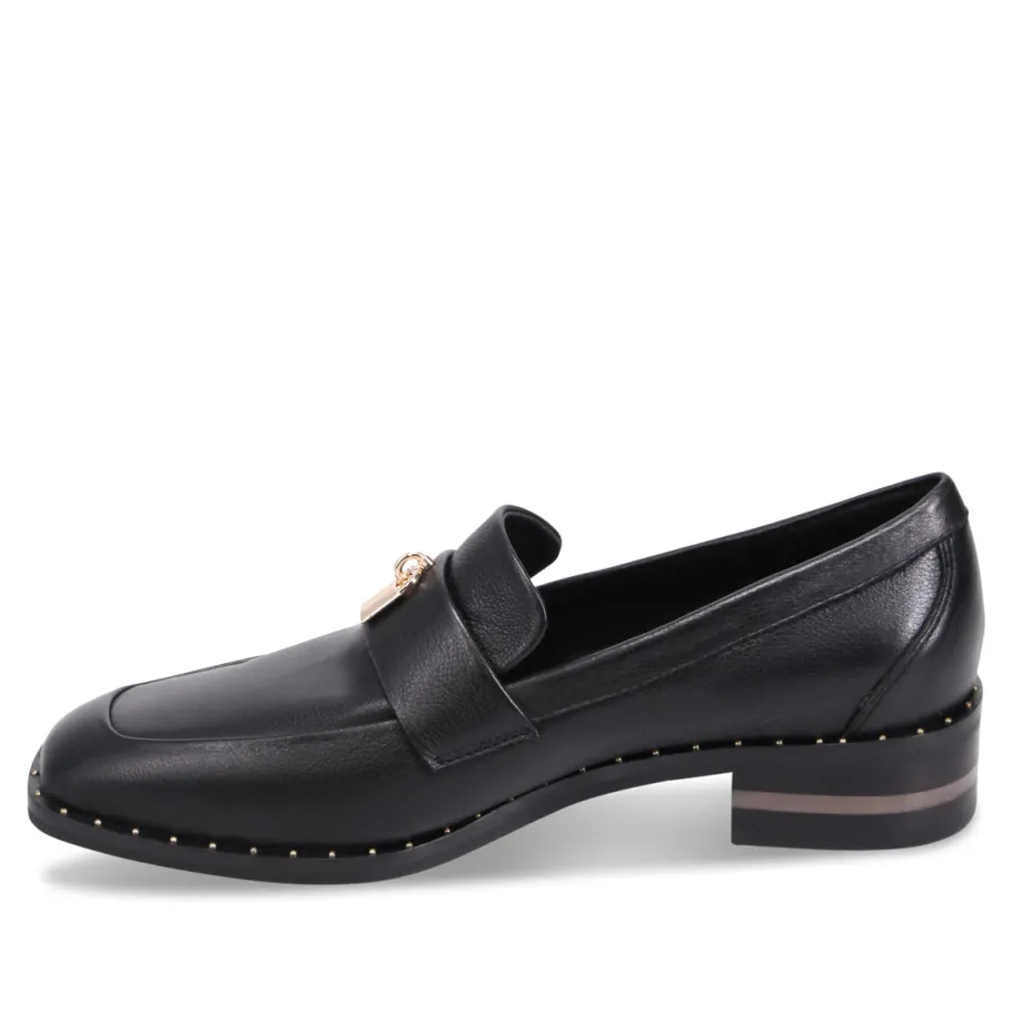 Elegance and timelessness define Fillipia, a moccasin that adds a neat touch to all your outfits. With its clean lines, structured silhouette and refined strap adorned with a discreet metallic detail, it embodies casual, controlled elegance. Its small block heel, highlighted by a stacked effect, offers just the right amount of height while ensuring lasting comfort. A refined choice, as perfect for the office as for your casual looks.