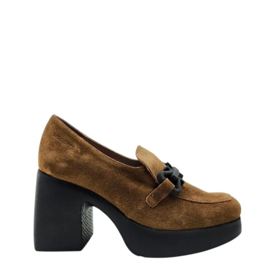 Assert your style with the H-4961 shoe from WONDERS, a shoe that combines retro allure with modernity. Crafted in genuine suede, it features a refined finish and ornamental detailing on the vamp. Its assertive design rests on a thick platform sole and bold block heel, perfect for adding character to any outfit.