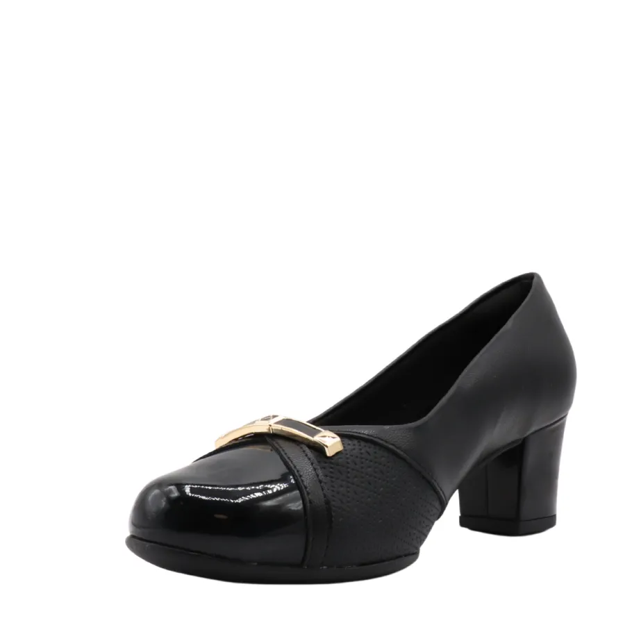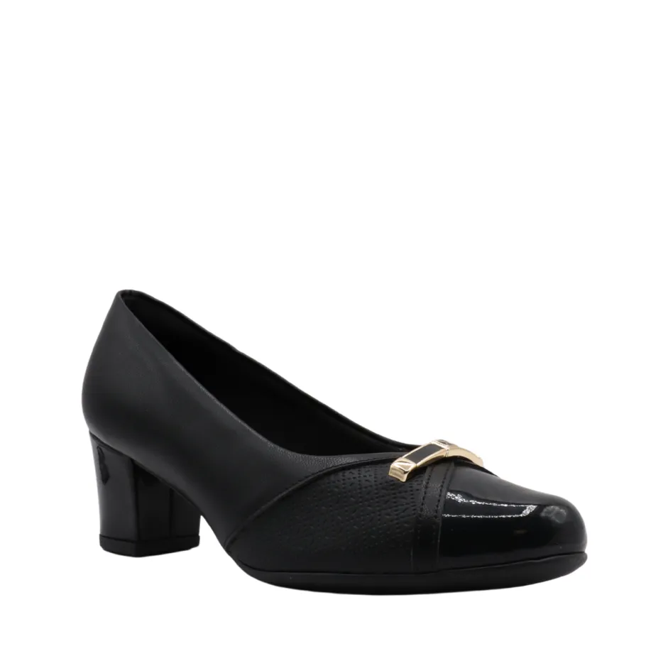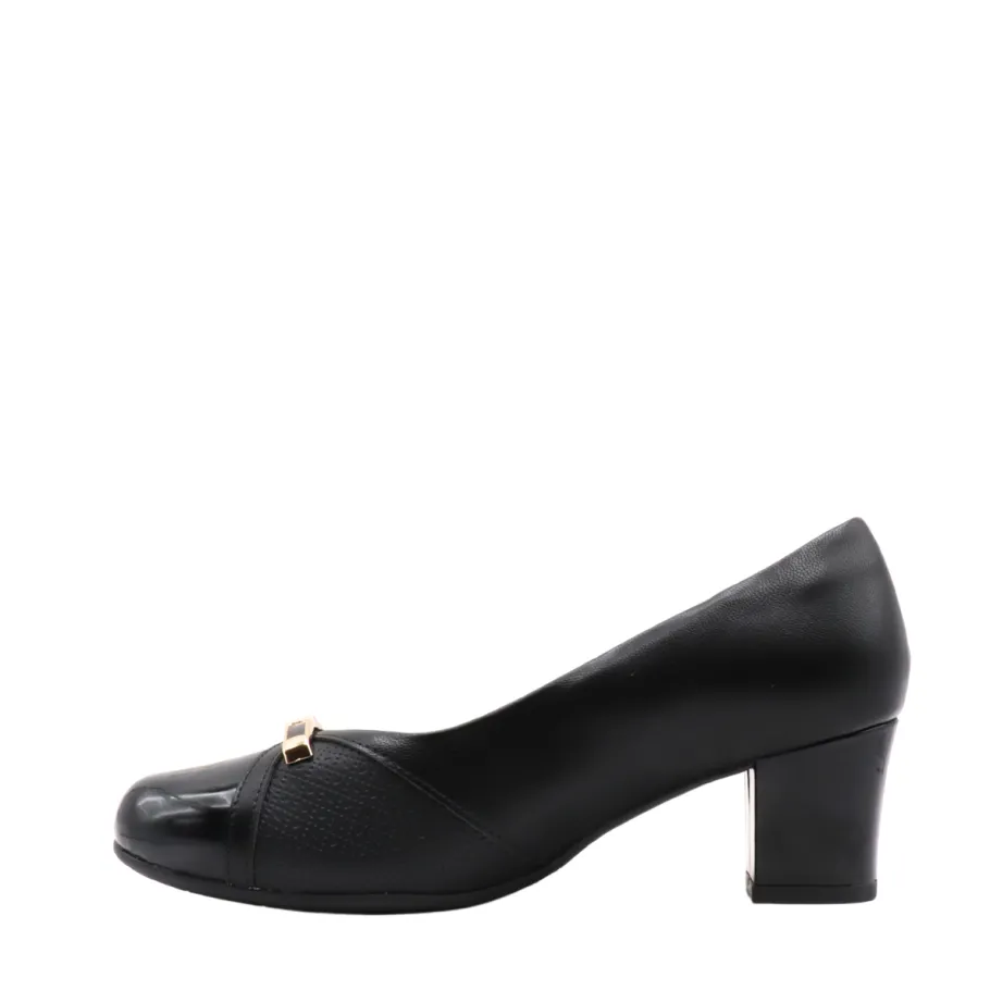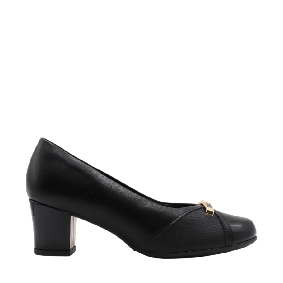 Make a chic statement with these elegant heels by Piccadilly. Their timeless black design is enhanced by a gold detail at the front and a subtle play of textures, for a sophisticated touch on any occasion. Ideal for complementing your professional or dressy outfits with modernity and comfort.