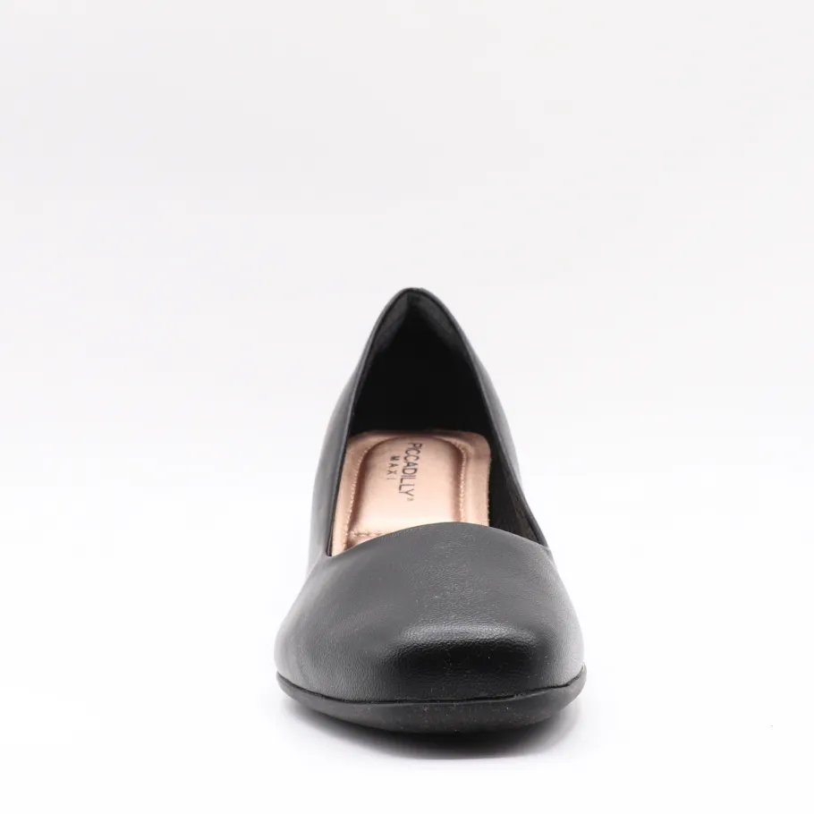 Simplicity, comfort and elegance. This black Piccadilly pump seduces with its minimalist, timeless design. Its stable block heel and supple sole make it ideal for long days at the office, on the move or at parties. A versatile model that easily complements all your outfits.