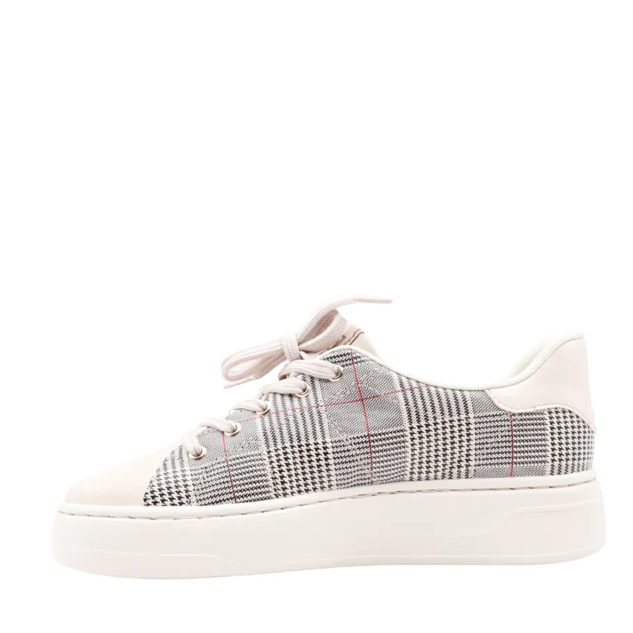 Design: tartan print, laces, white platform sole