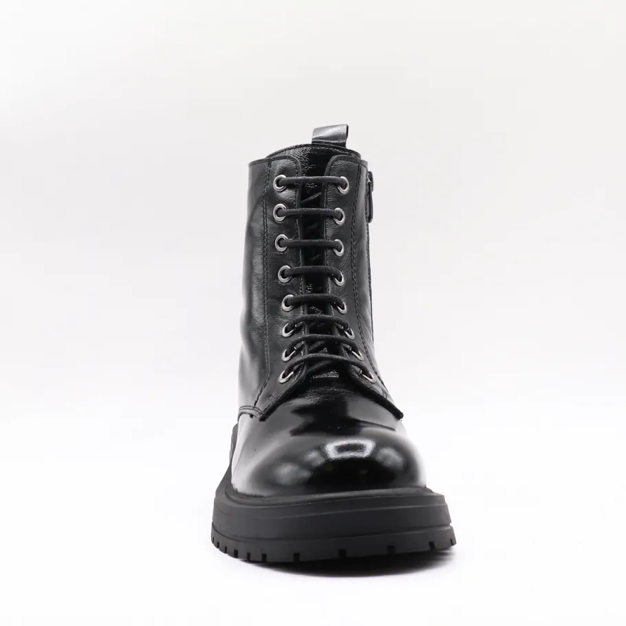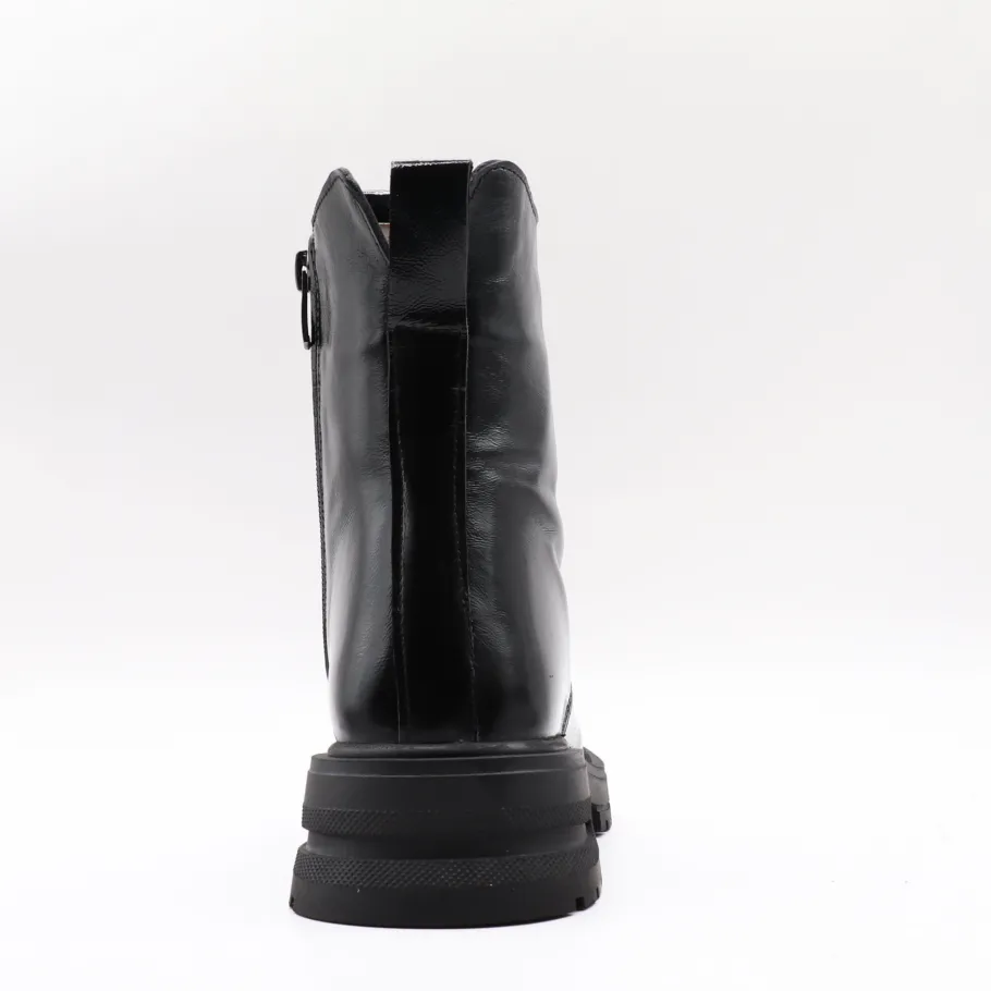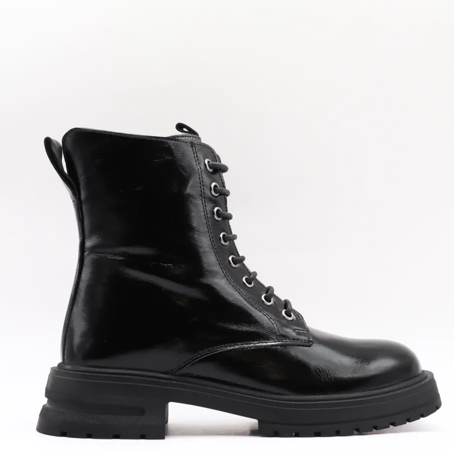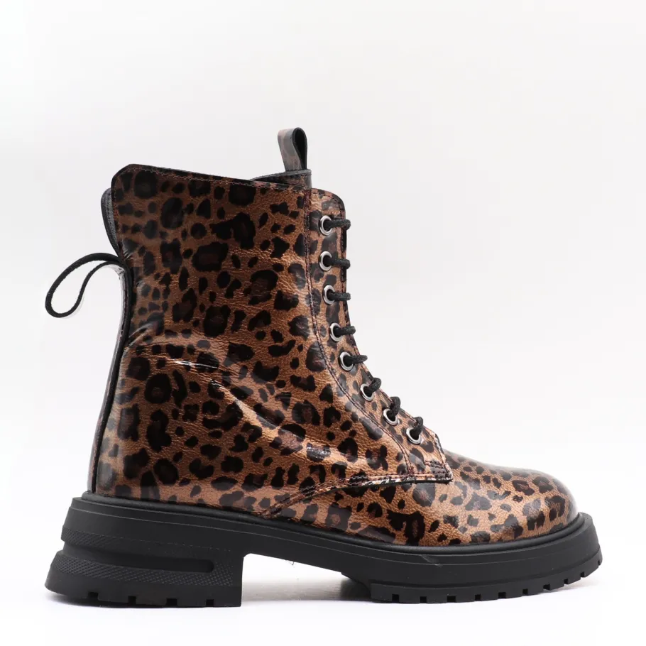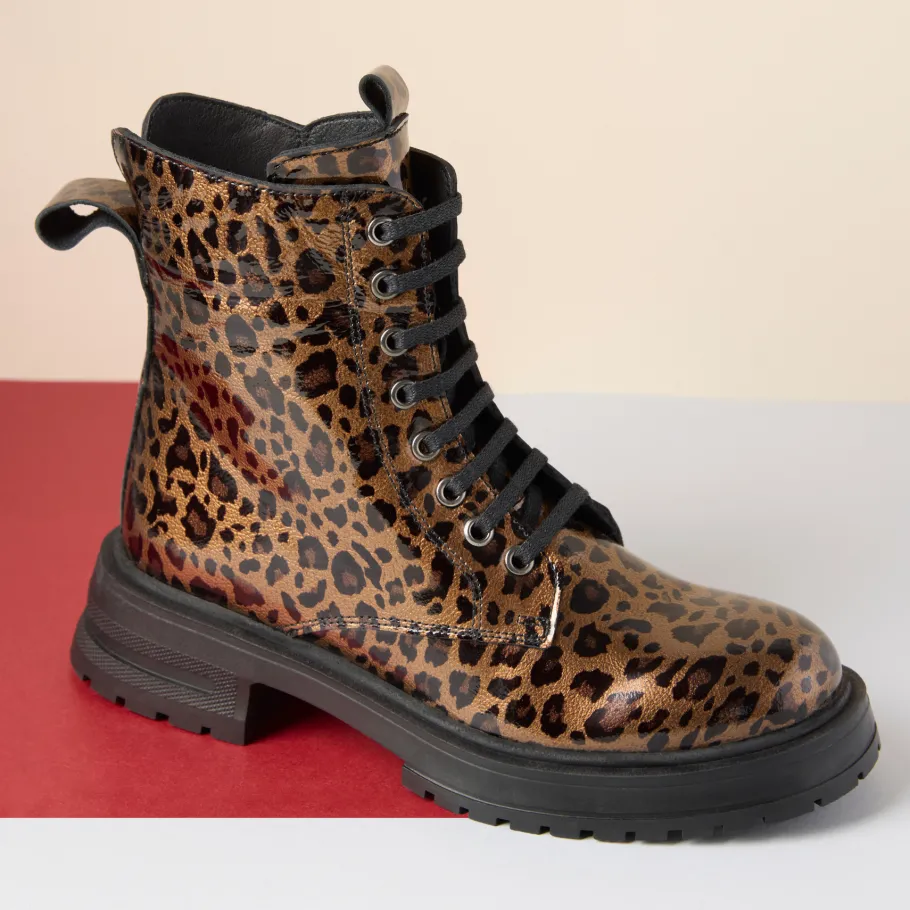 Bold and on-trend,Apropo ‘s Lazra boot features patent leather and a lace-up silhouette. Available in classic black or leopard print for an assertive style, it combines comfort and contemporary allure thanks to its sturdy notched sole. Made in Europe from quality materials, they’re the perfect boot for those who want to combine fashion with everyday functionality.