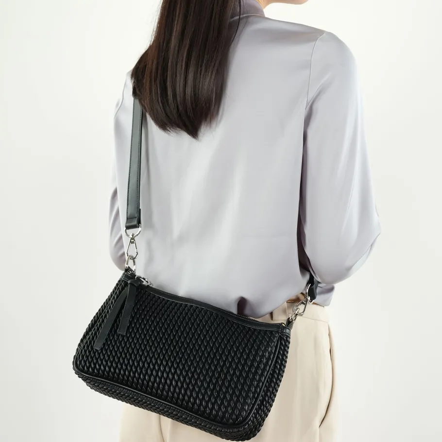 Rivulet’s textured vegan leather adds a distinctive touch to this classically styled shoulder bag.