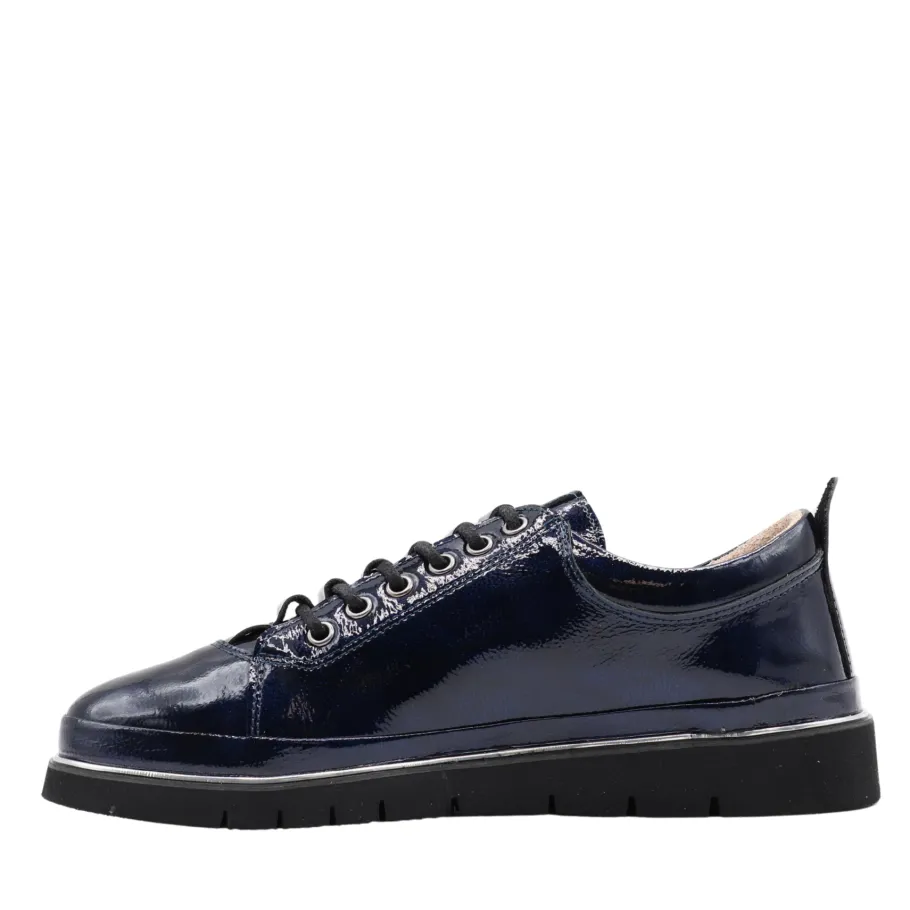 Combine boldness and comfort with Maude, Apropo’s patent leather sneaker. Available in deep blue and vibrant red, this model revisits the classic sports shoe with a touch of shine and sophistication. Its thick, supple sole ensures lasting comfort, while metal eyelets and patent finish give it a modern, urban look.